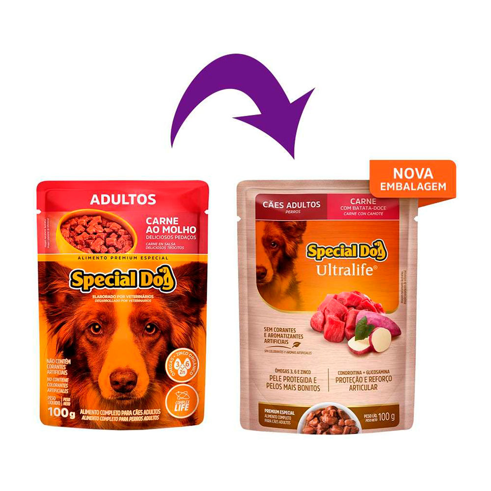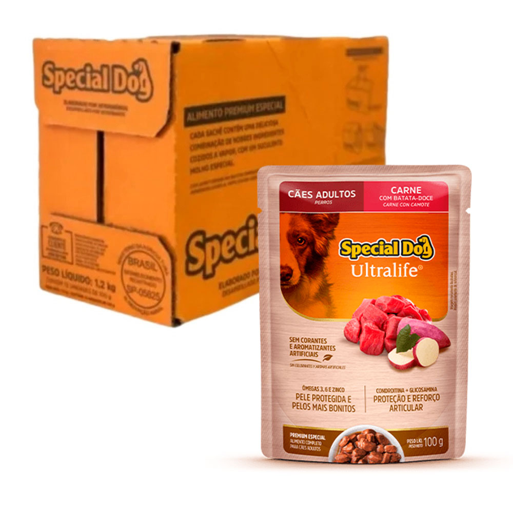 Caixa 12un Ração Úmida Special Dog Sachê Cães Adultos Carne 100g