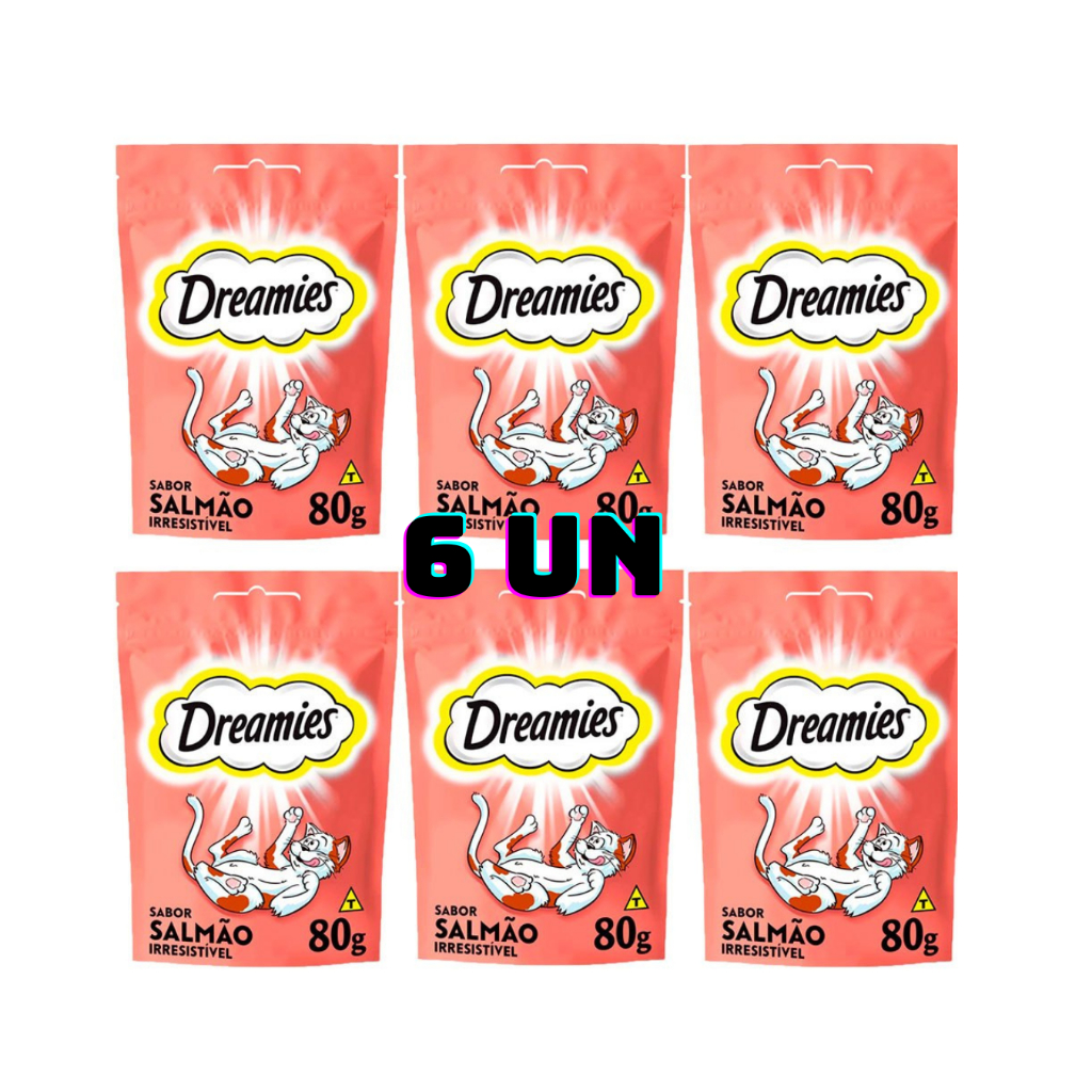 Caixa 6un. Petisco Dreamies Salmão Para Gatos Adultos 80g
