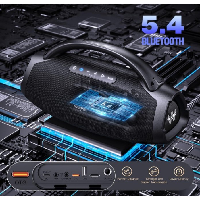 Caixa Bluetooth W KING X20 Boombox – Som Potente, Graves Profundos + Carregador ESSAGER 67W de Brinde