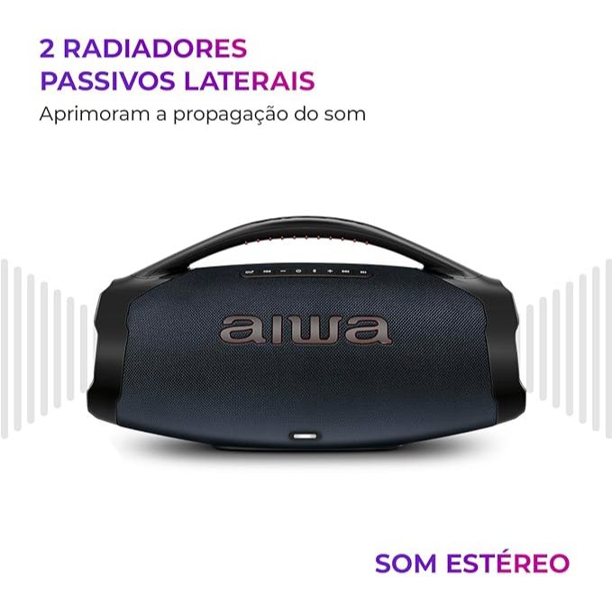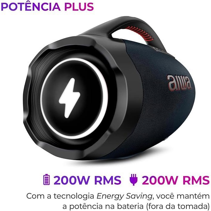 Caixa Boombox Plus AIWA BBS-01-LBL 200W BT 30H IP66 USB RGB