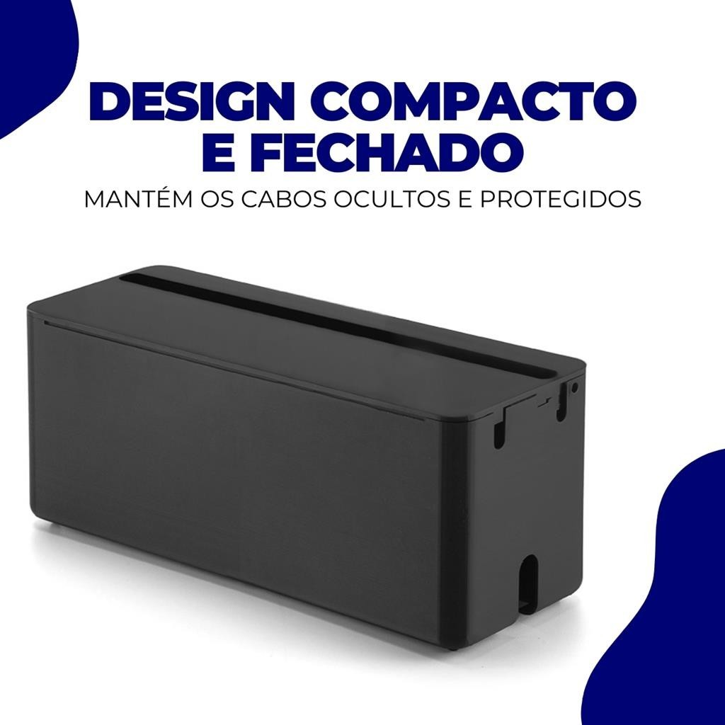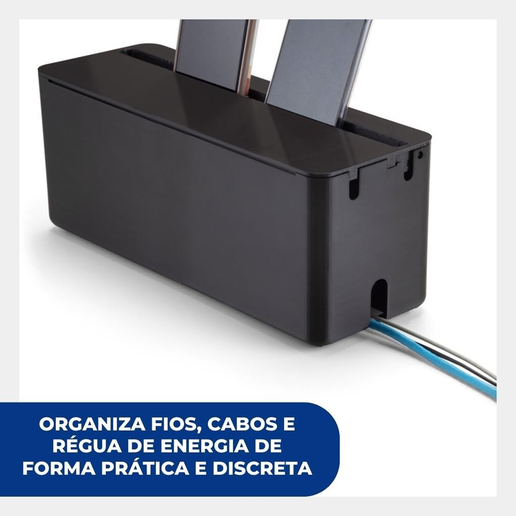 Caixa Box Organizadora Esconde Fios Cabos Regua Energia Mesa Escritorio Suporte Celular Preto Arthi