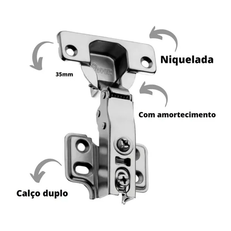 Caixa C/200 Dobradiça Para Armários Com Amortecimento Reta Calço Removível