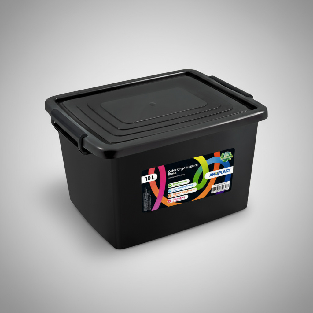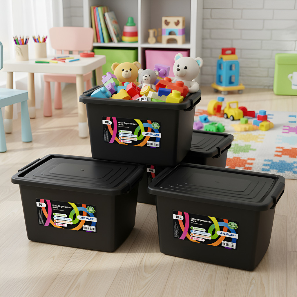 Caixa C/trava P/brinquedo Organizadora 20 Litros Cor- Preta - Preto