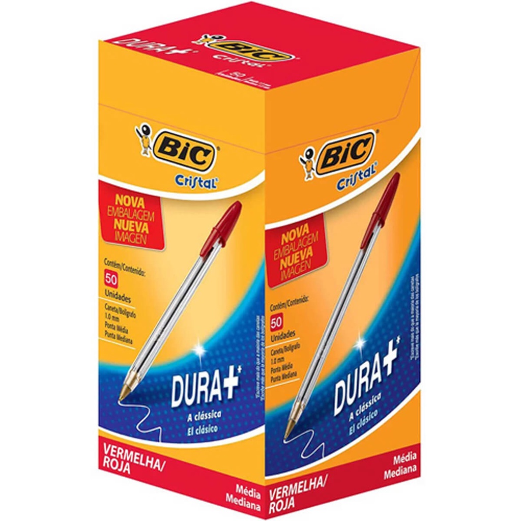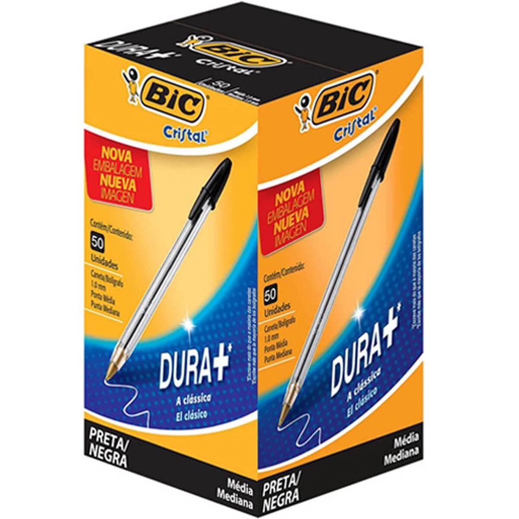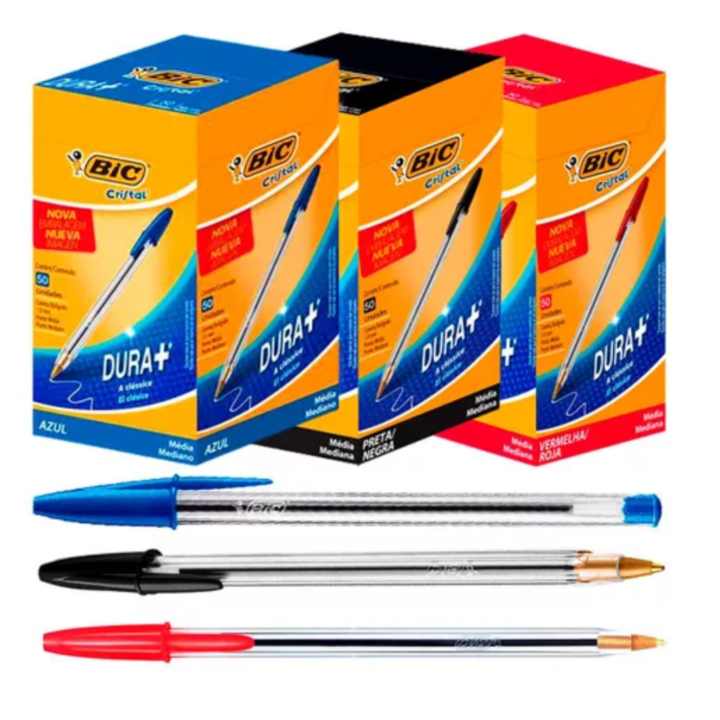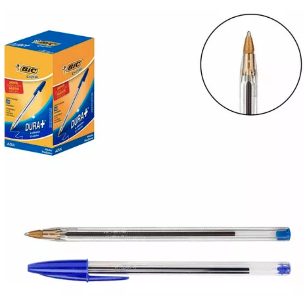 Caixa Caneta Bic 1.0mm Cristal Ponta Fina Com 50 Unidades