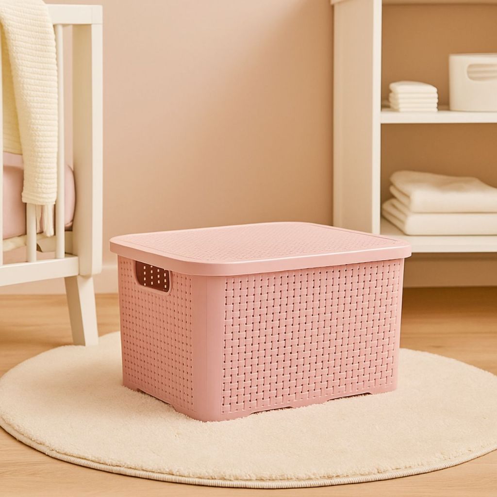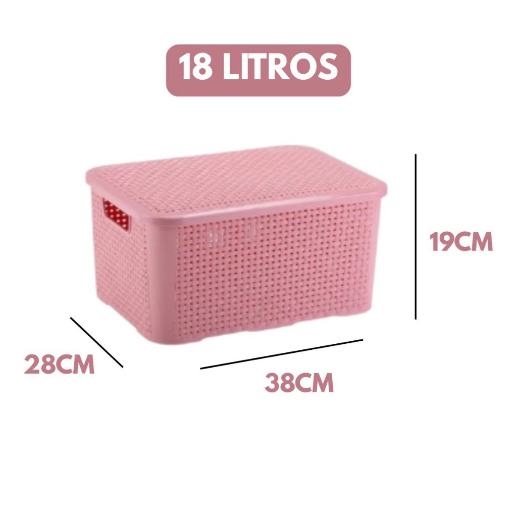 Caixa Cesto Organizador Rosa com Tampa Rattan 18 Litros Resistente