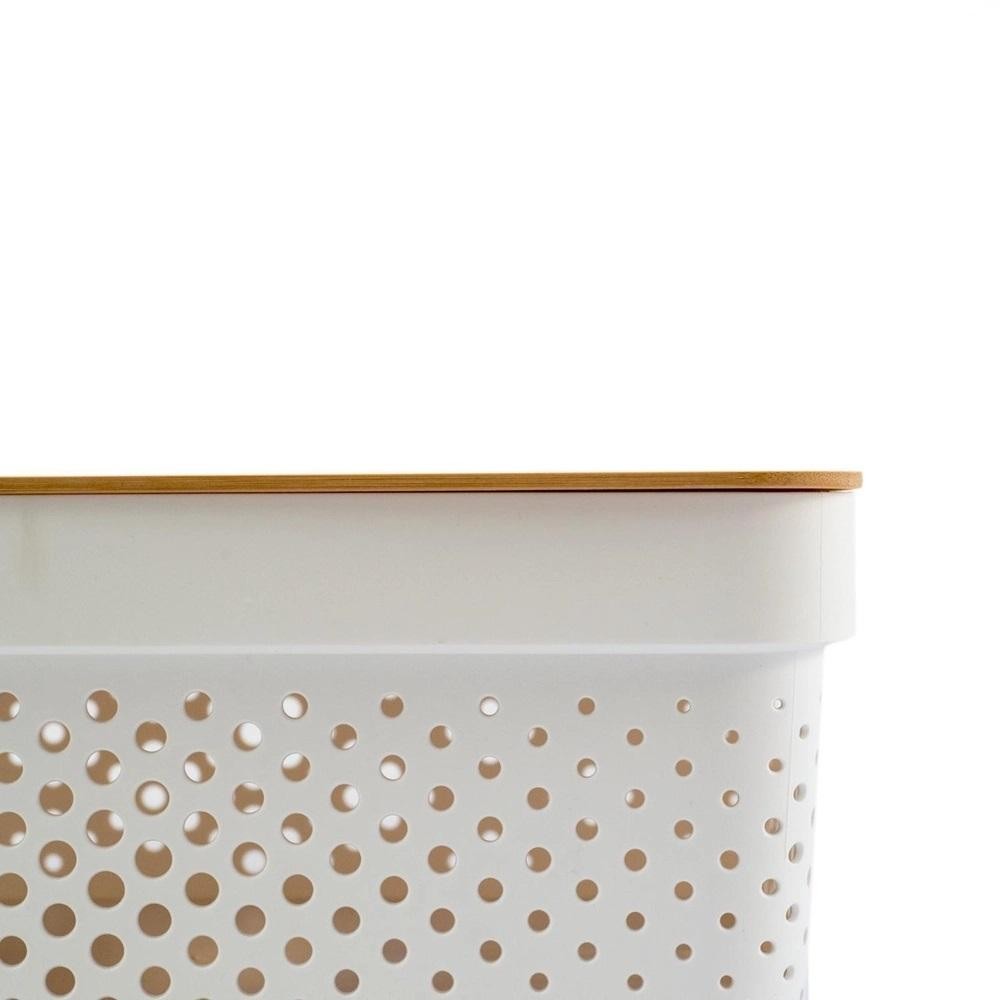 Caixa Cesto Organizadora Com Tampa de Bambu 26X18X12CM