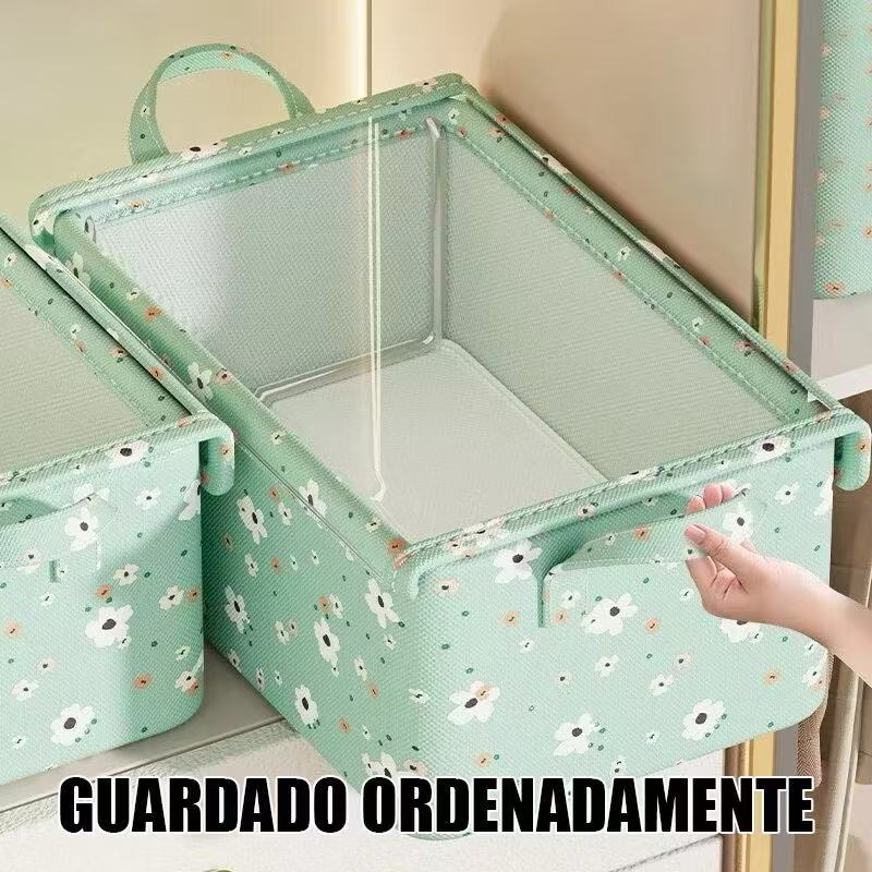 Caixa De Armazenamento De Roupas Dobrável Brinquedos Com Tampa Acabamento De Cesta Nova Flor Quebrada