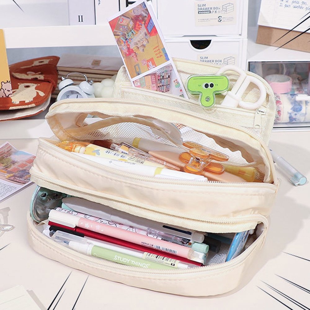 Caixa De Lápis Multicamadas Estojo com Tampa Flip-top De Grande Capacidade Saco De Papelaria Material Escola Multifuncio