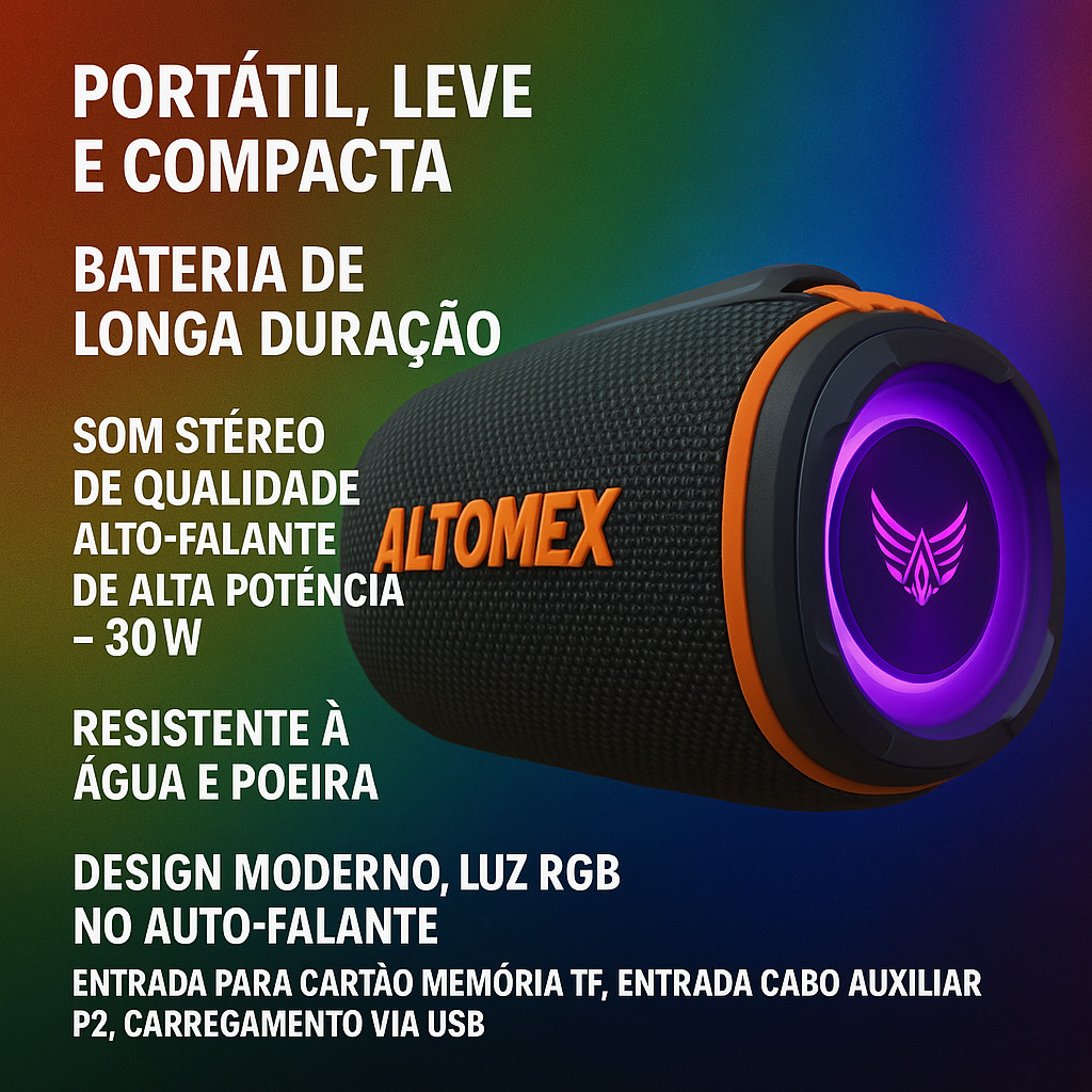 Caixa De Portátil Compacta Potente 30 W À Prova D'Água Luz Led RGB TWS Fm P2 Cartão Memória Som