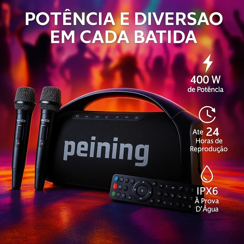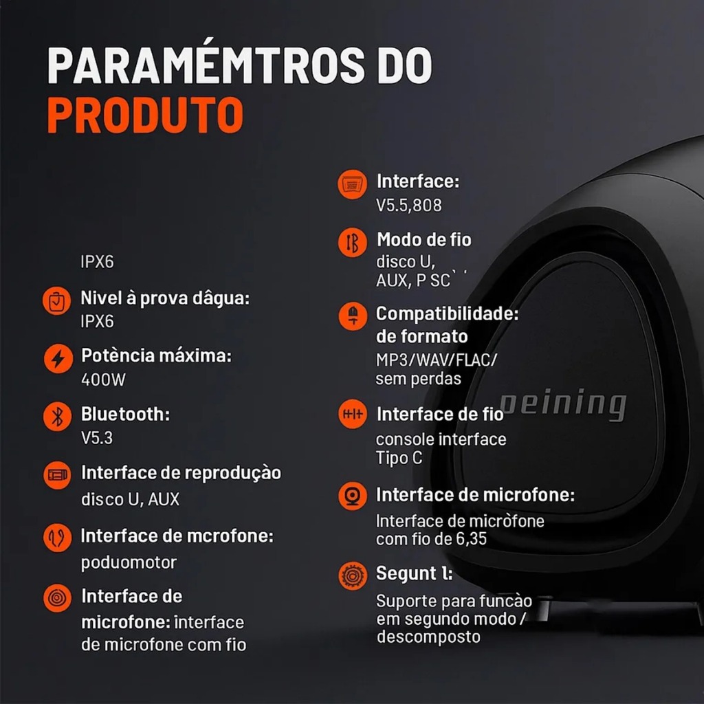 Caixa De Som Amplificada Boombox 400w + 2 Mic Bt 5.3 Tdx Preto 127/220v