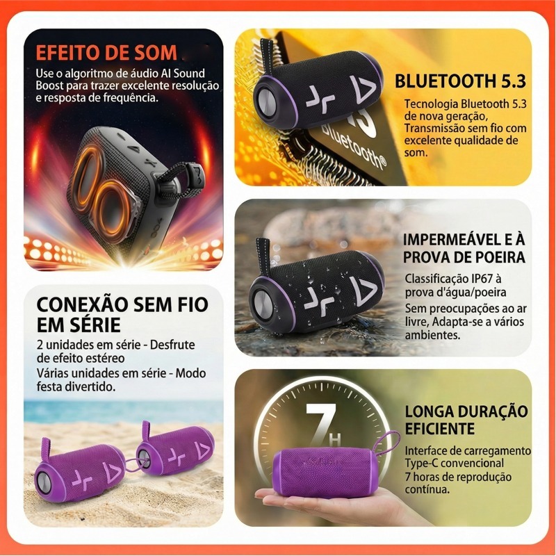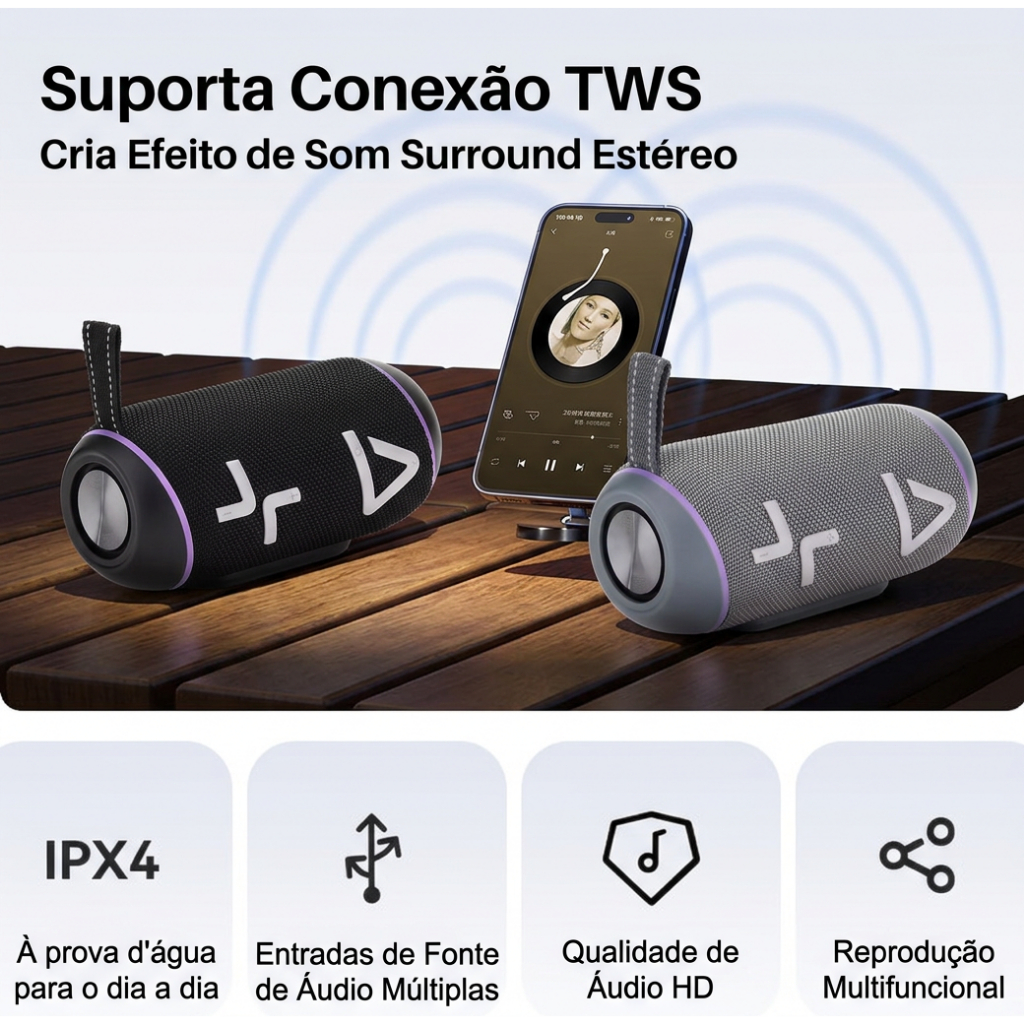 Caixa De Som Bluetooth 16W Portátil TWS atmosfera colorida RBG mini speaker à prova d'água subwoofer potente-HY-695