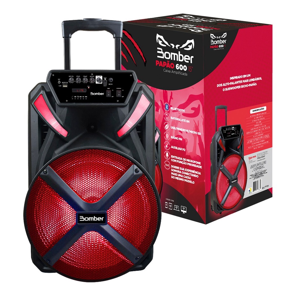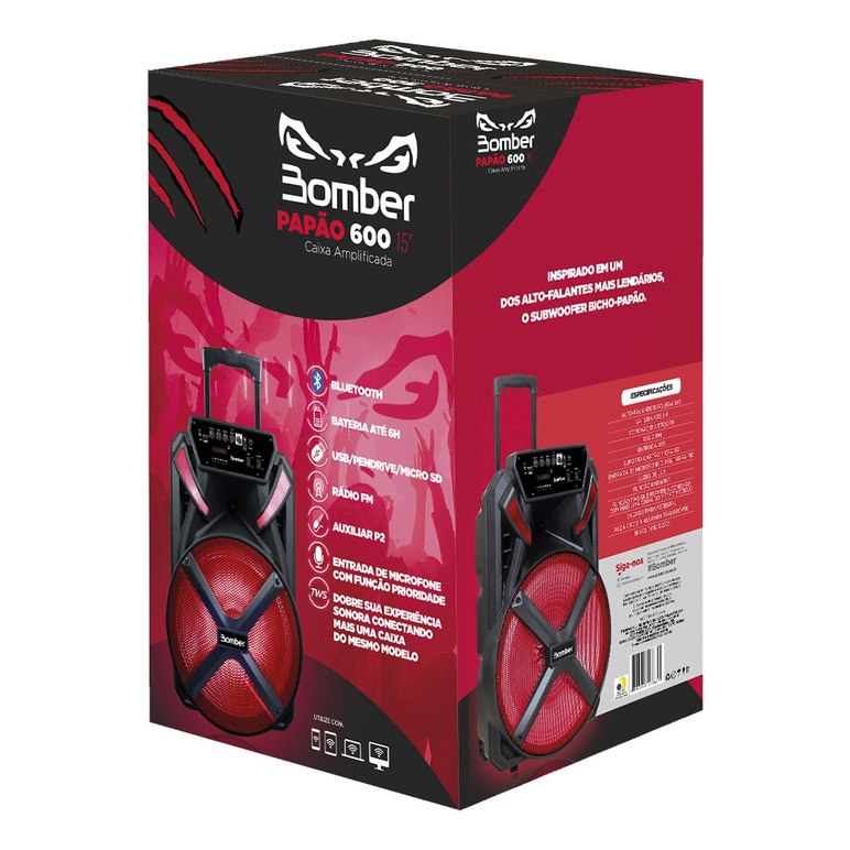 Caixa De Som Bluetooth Bomber Papao 600 15 Polegadas 300rms