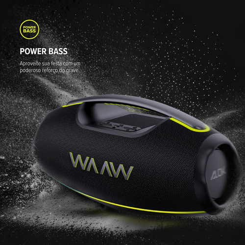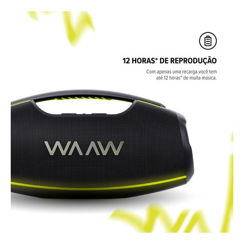 Caixa De Som Bluetooth Boombox Waaw By Alok Hyperboom 1000 À Prova D'água Preta 127/220v