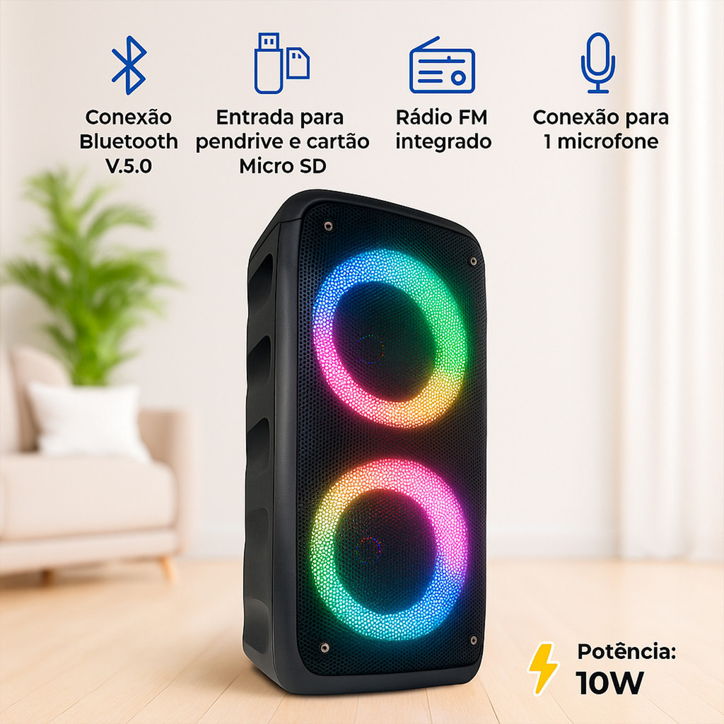 Caixa De Som Bluetooth PartyBox Led RGB Rítimico Som Alto Subwoofer Amplificado Conexão p2 Usb Karaoke