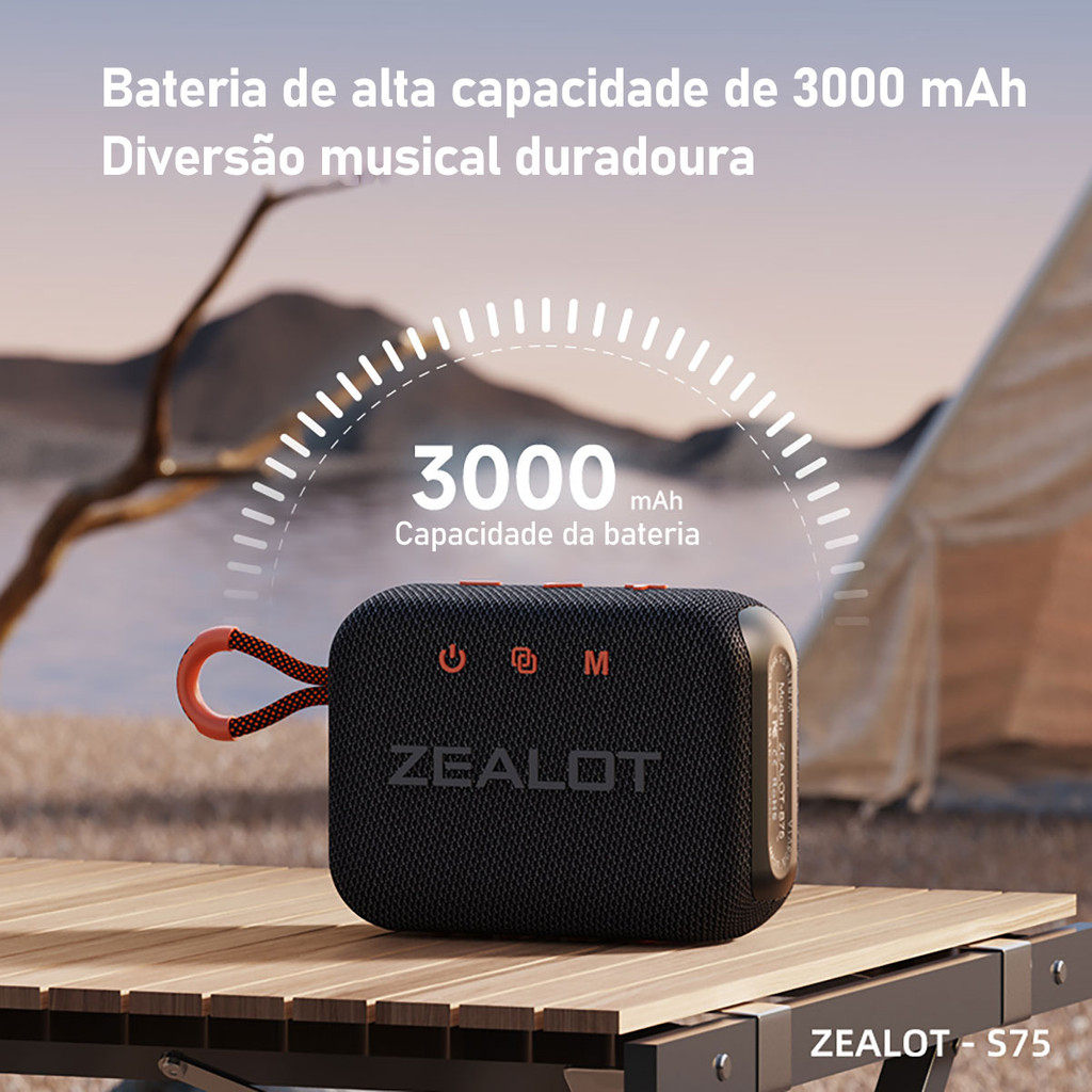 Caixa De Som Bluetooth Portátil Zealot S75 Som Potente Preto