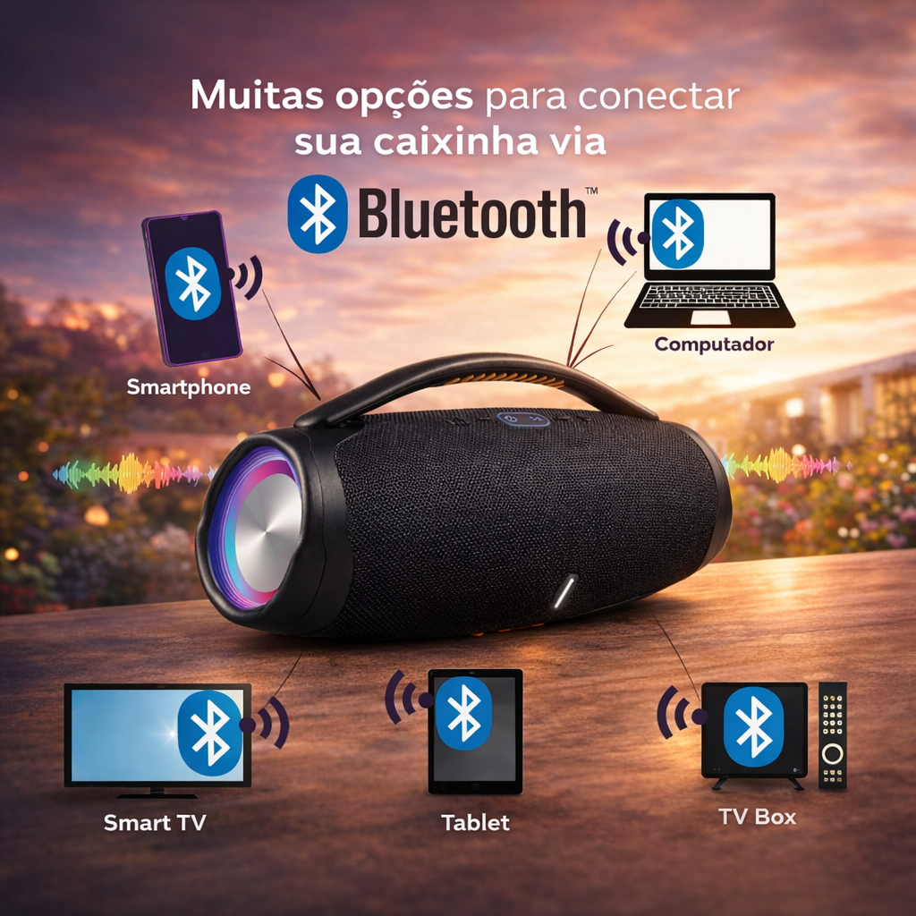 Caixa De Som Boombox 3 Bluetooth 120W 33CM OU 23CM/7OW Pen-drive Aux A Prova D'Água