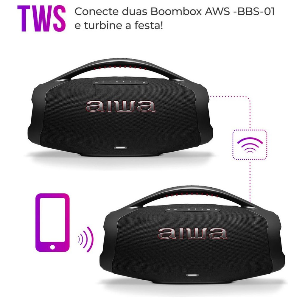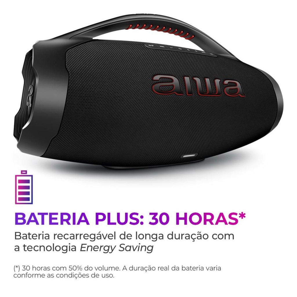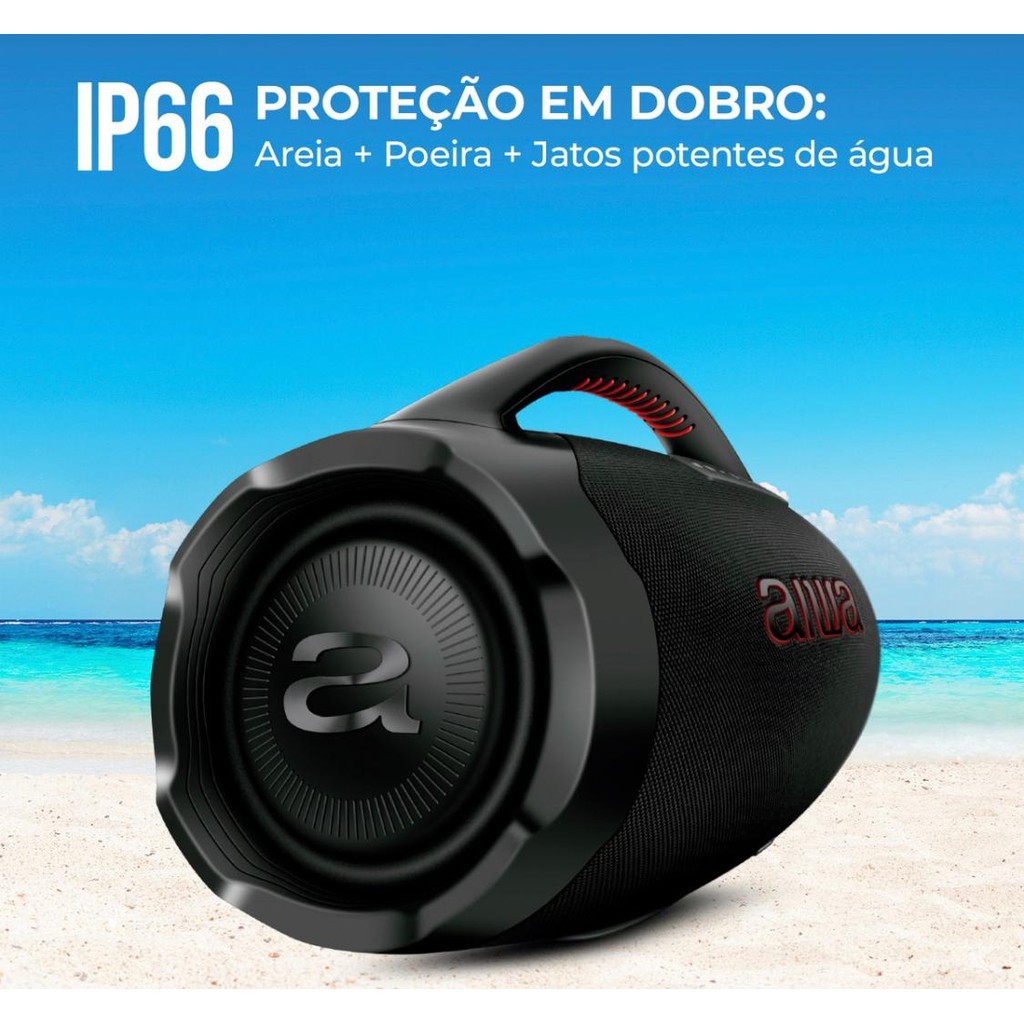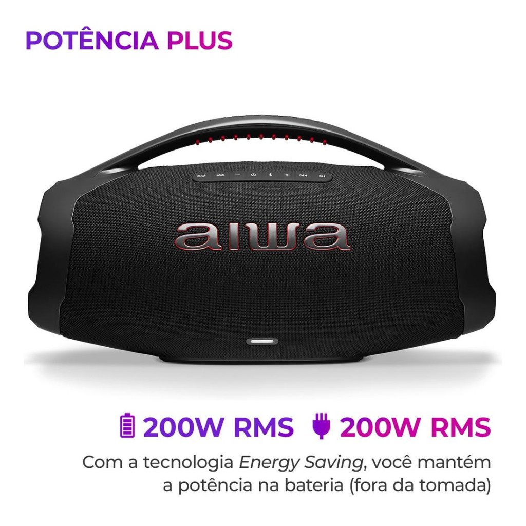 Caixa De Som Boombox Aiwa AWS-BBS-01B 200w IP66 30hs De Bateria Preto Original