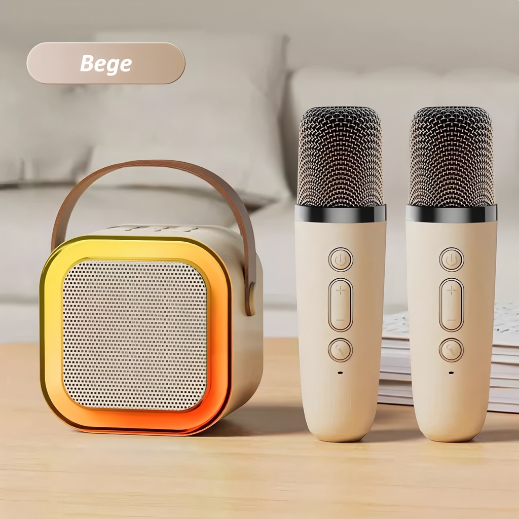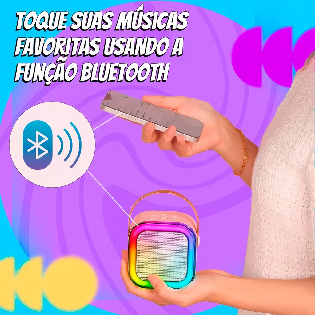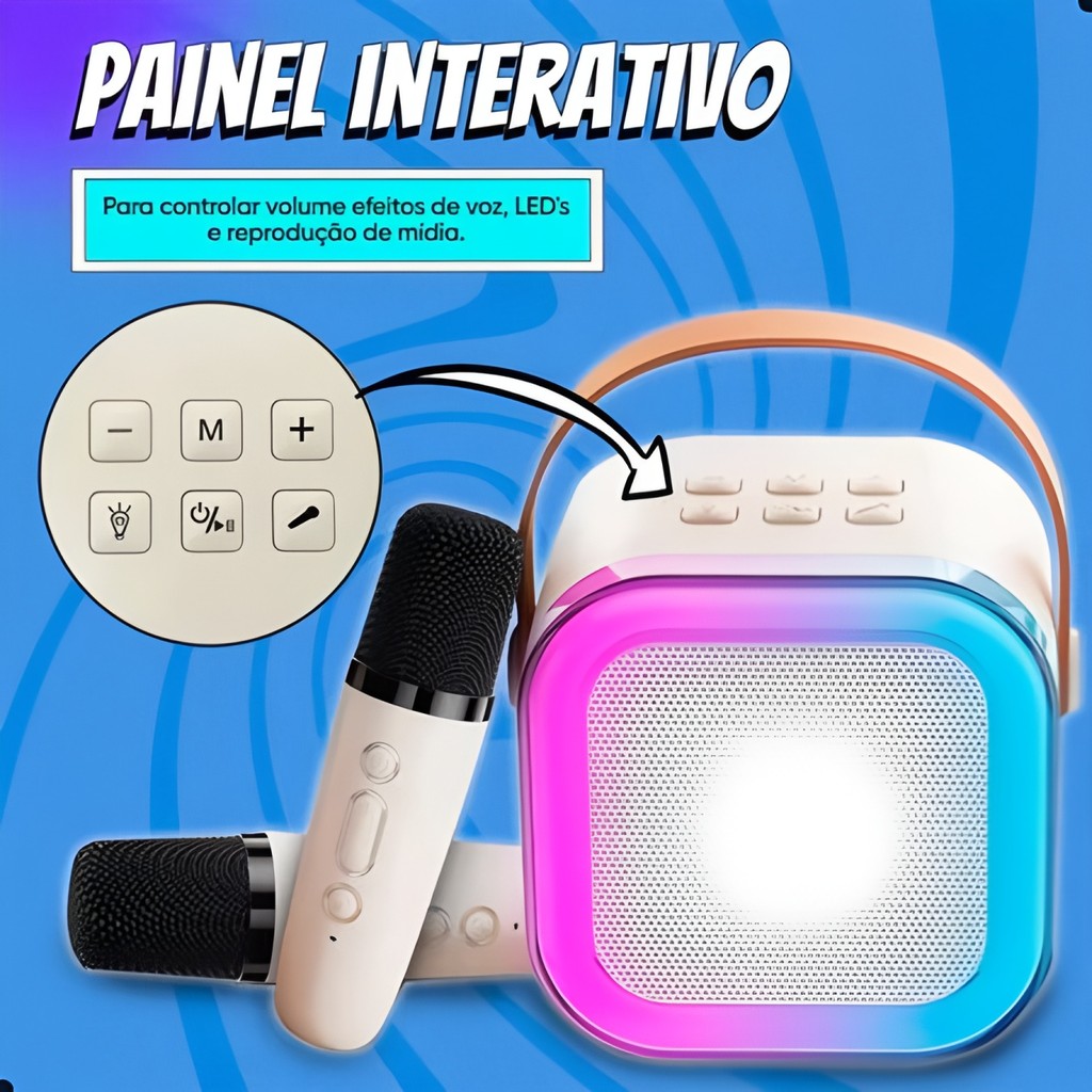 Caixa De Som C/ 2 Microfones Bluetooth 5.0 Karaokê Luzes led, Entretenimento em Casa