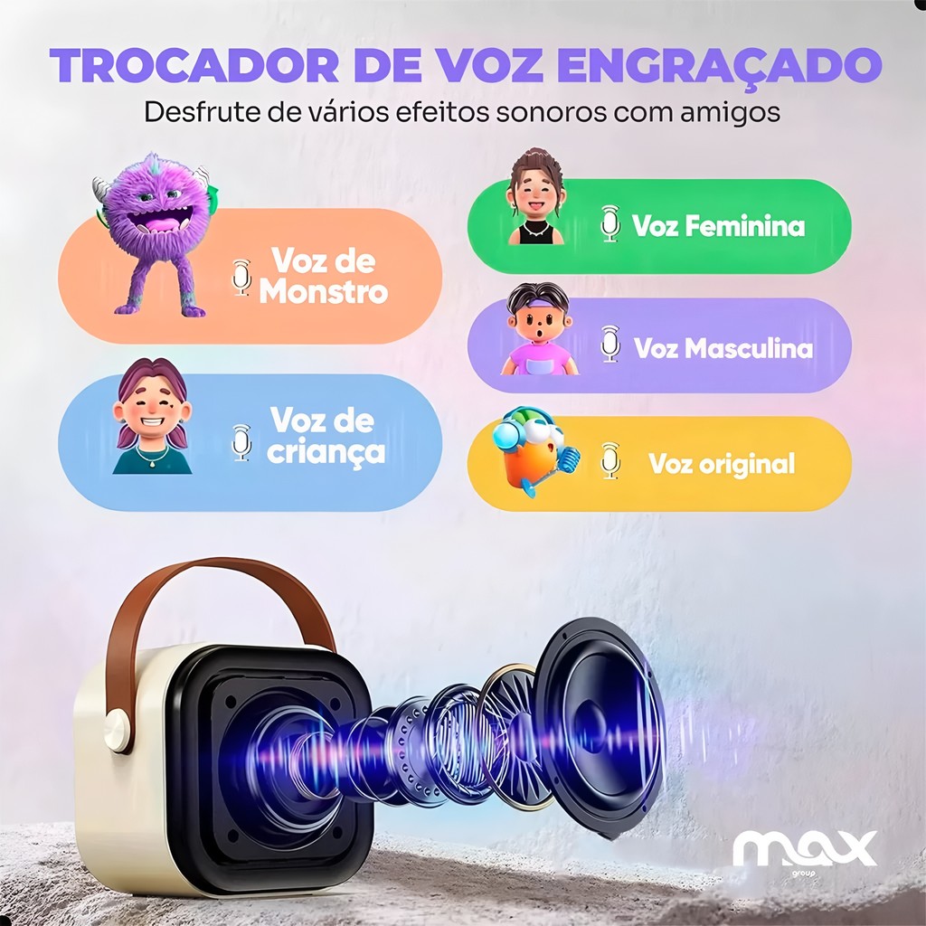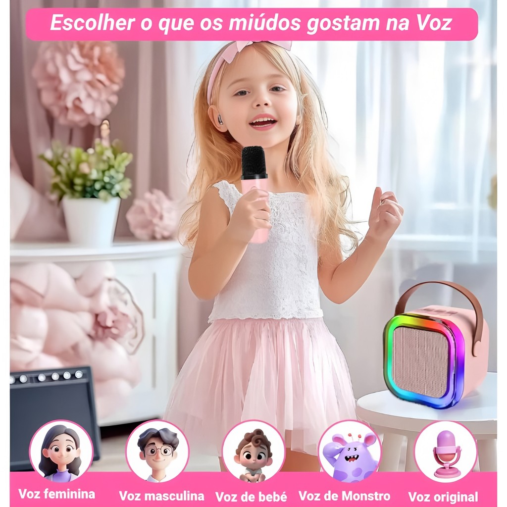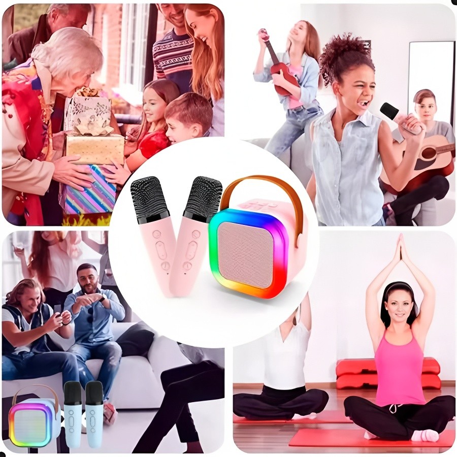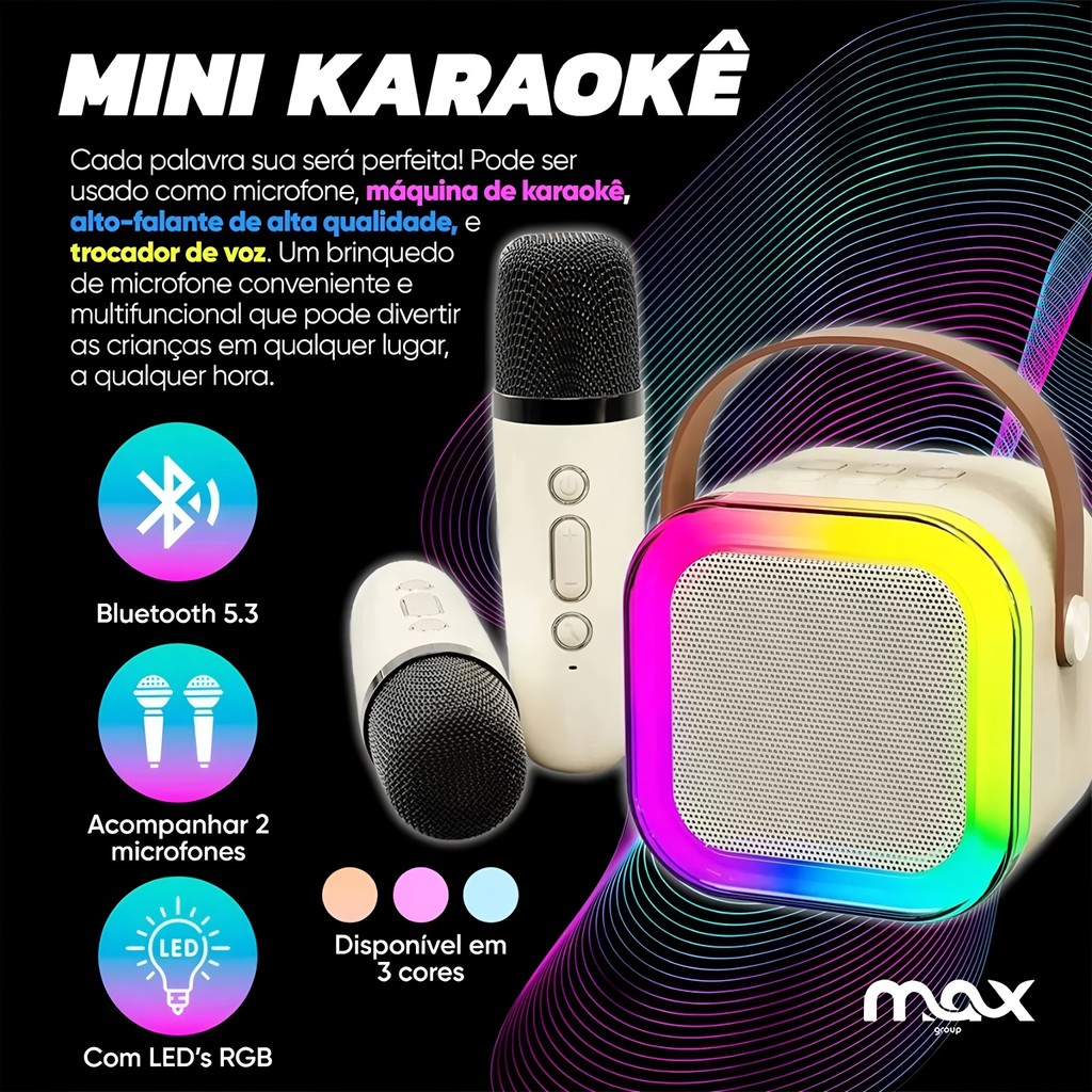 Caixa De Som C/ 2 Microfones Bluetooth 5.0 Karaokê Luzes led, Entretenimento em Casa