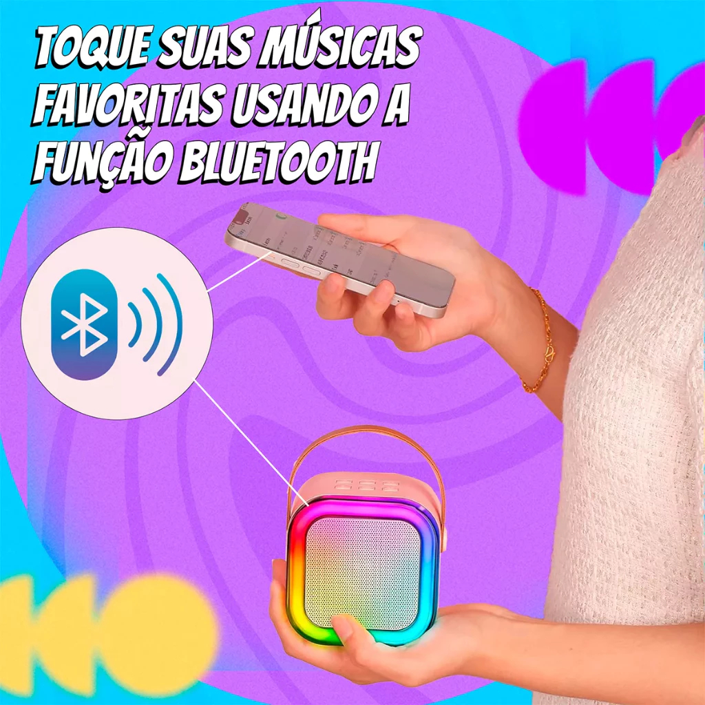 Caixa De Som C/ Microfones Karaokê Bluetooth - Brincadeiras em Família