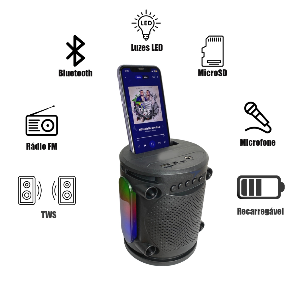 Caixa De Som Com Microfone Caixinha Bluetooth Karaokê Pendrive Usb Fm Sd p10