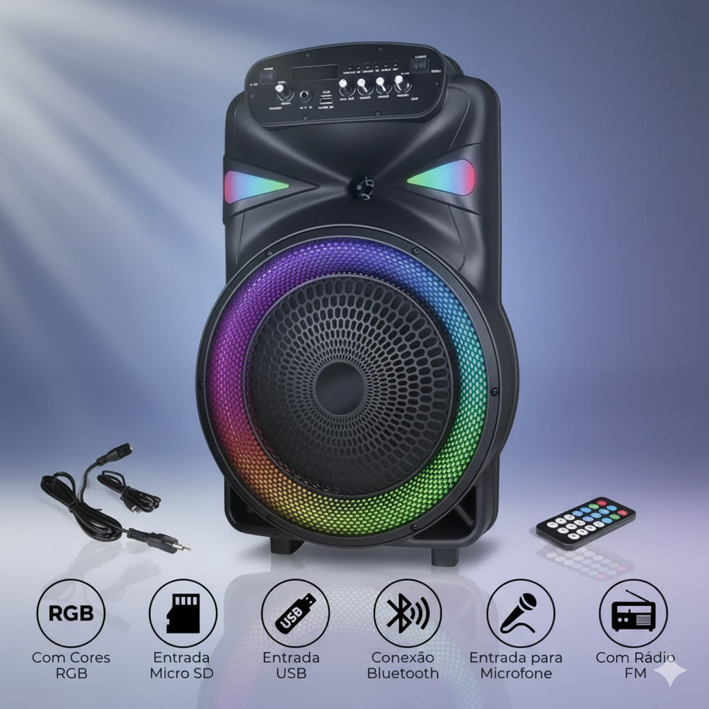 Caixa De Som Grande Bluetooth Com Roda Perfeito Para Palestra Teatro Igreja Praia Festa Reunião