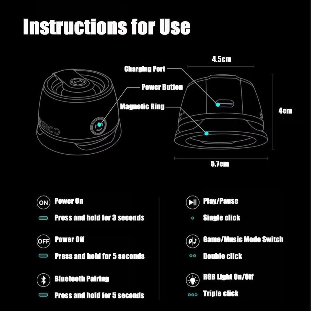 Caixa De Som LED Bluetooth magnético portátil atmosfera colorida RBG mini Speaker à prova d'água
