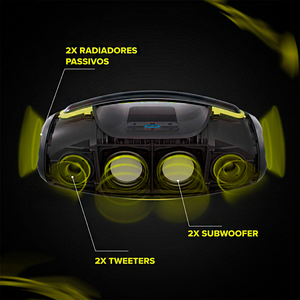 Caixa De Som Portátil Boombox Waaw By Alok Hyperboom 1000 Preto