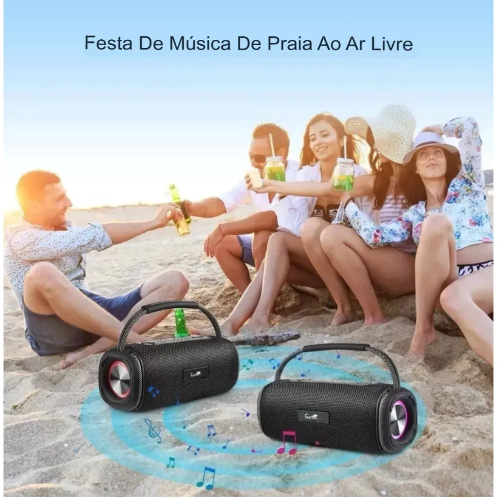 Caixa De Som Bluetooth 100w Graves Bass Bosst Potente Agold Super Alta Ipx6 Portatil Preto 110V/220V Alta