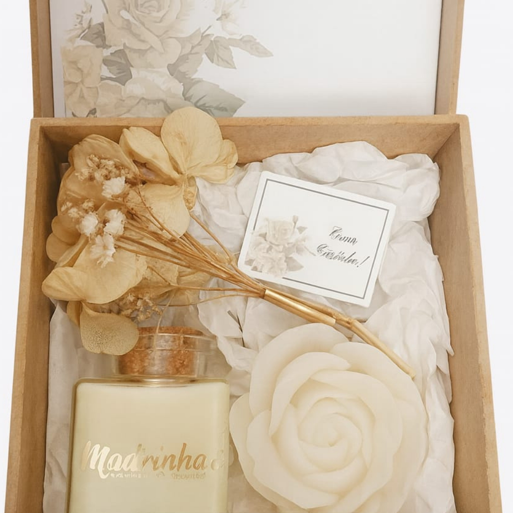 Caixa Madrinha Casamento | Vela Aromática 50g + Sabonete Floral Rosa 47g