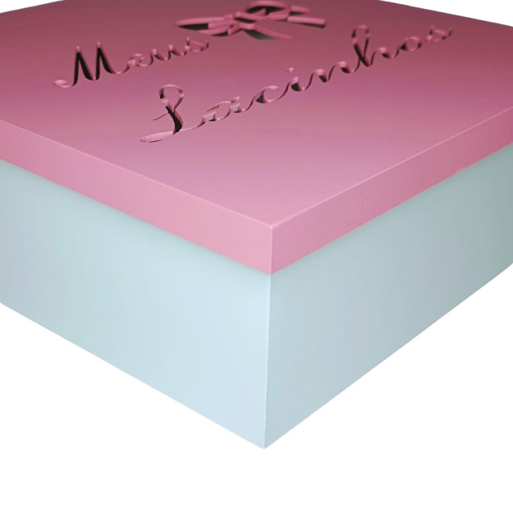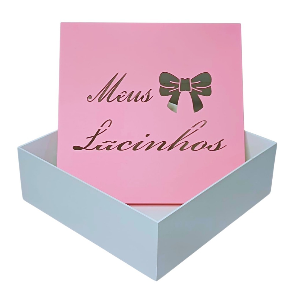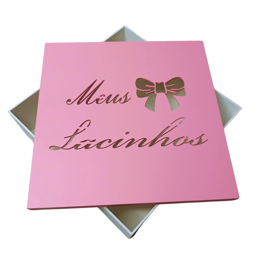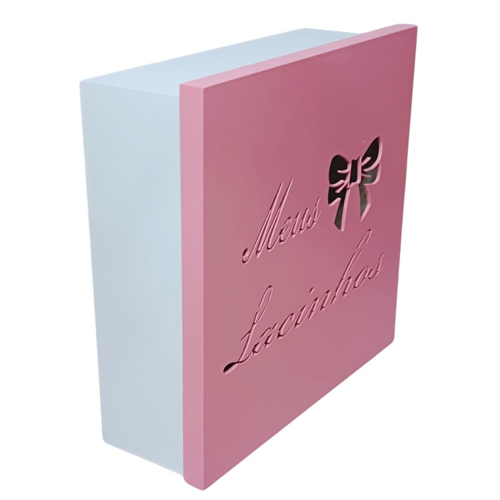 Caixa Meus Lacinhos Grande (30x30x10) Rosa/Branco