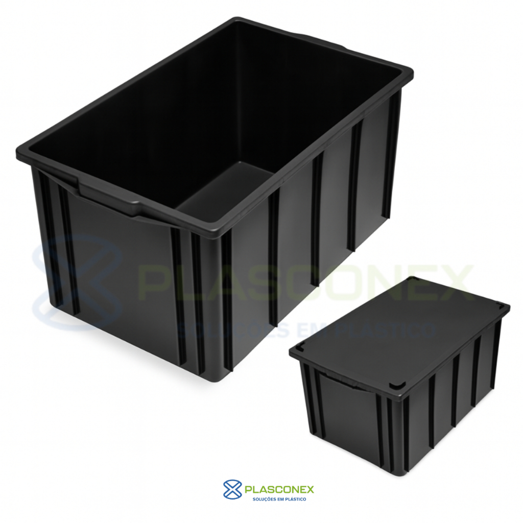 Caixa Organizadora 130 Litros com tampa Preto