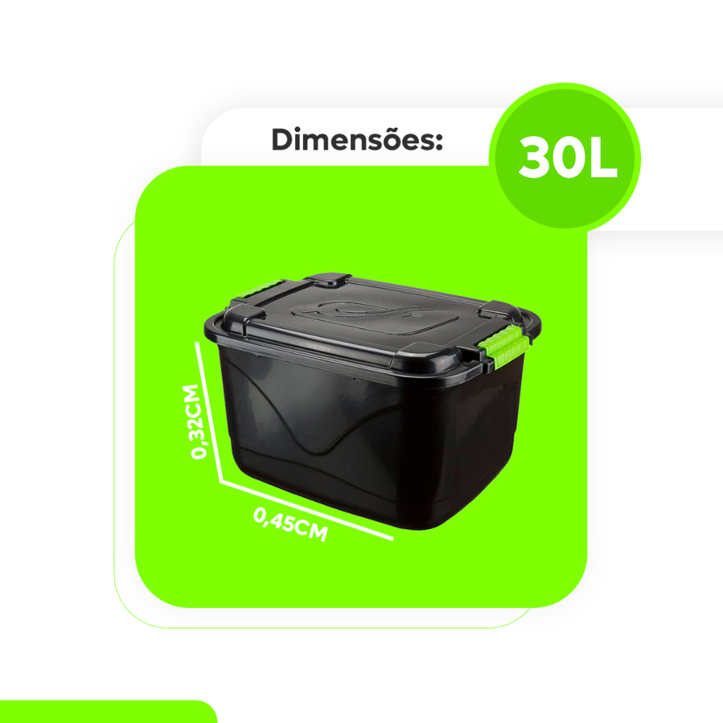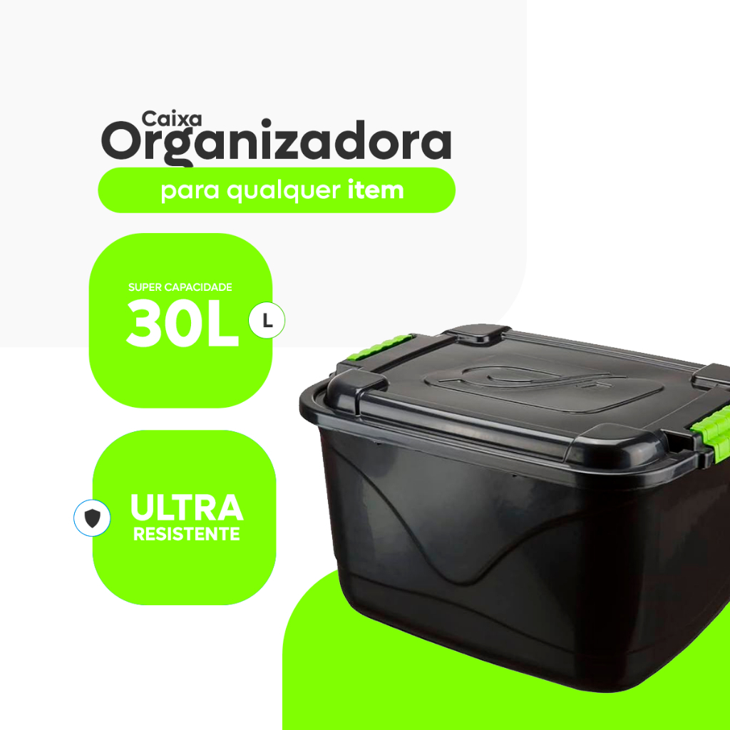 Caixa Organizadora 30L Grande C/Tampa e Trava Cesto para Brinquedos e Multiuso