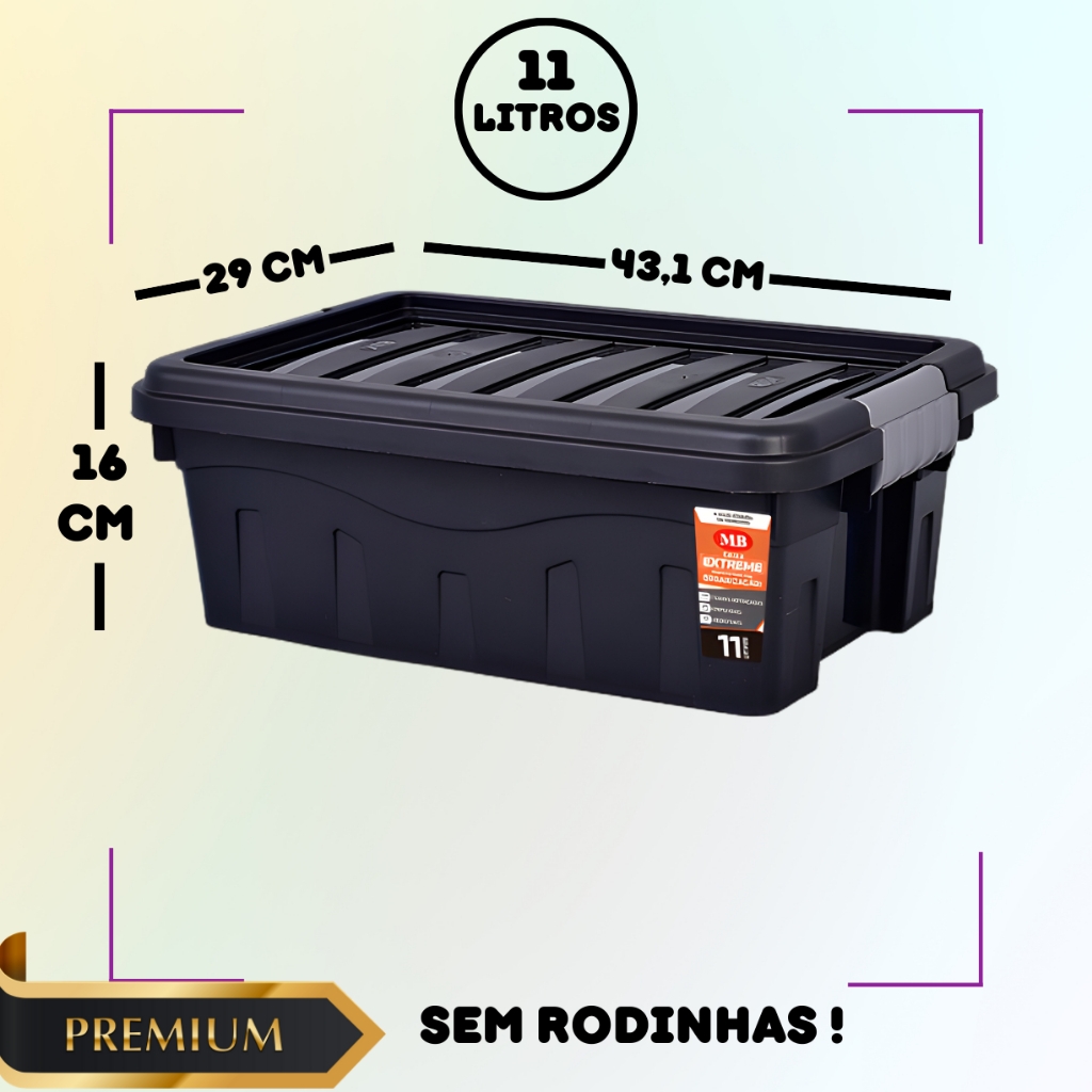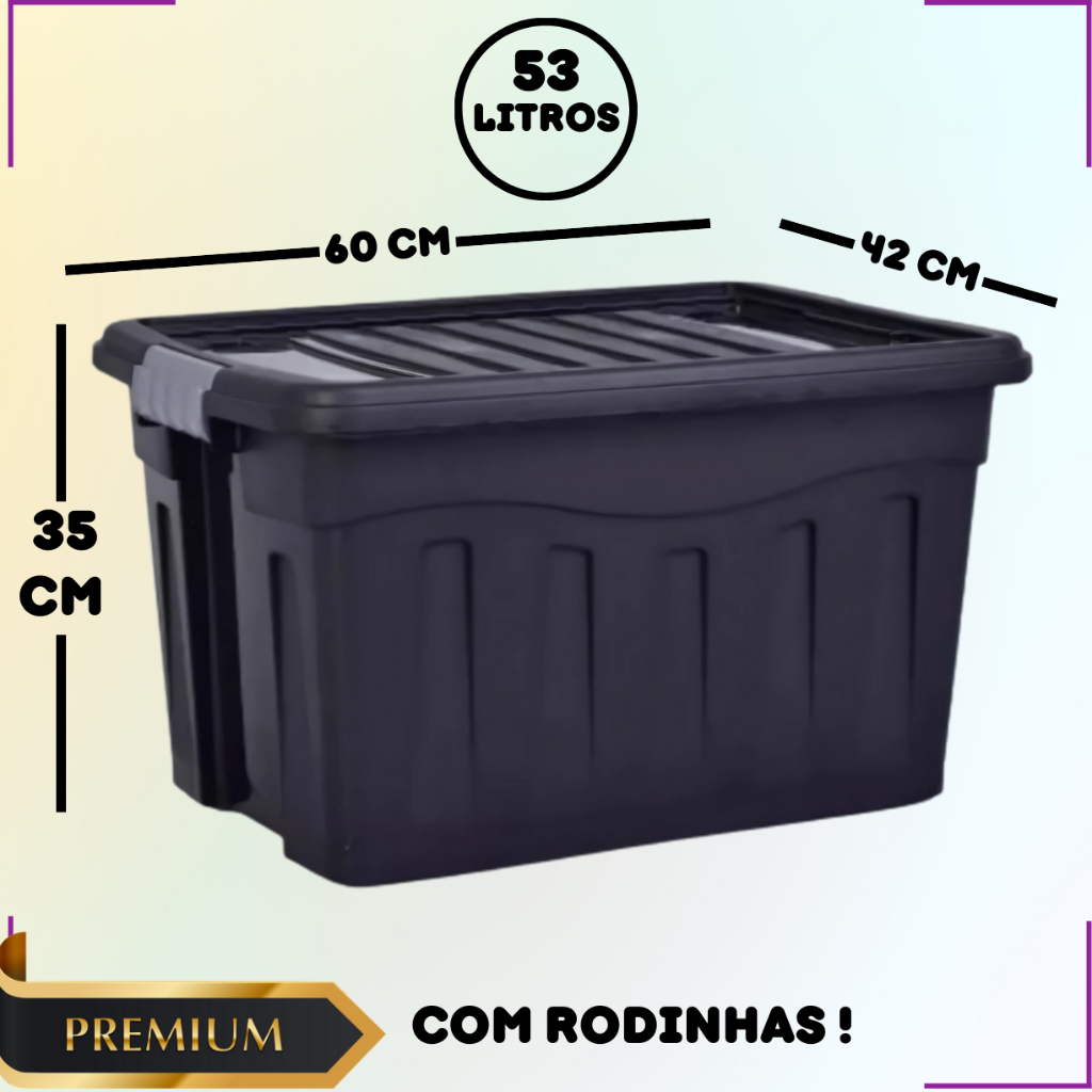 Caixa Organizadora 53L Com Rodinhas Preta Grande Multiuso Tampa Forte Travas Seguras Reforçadas