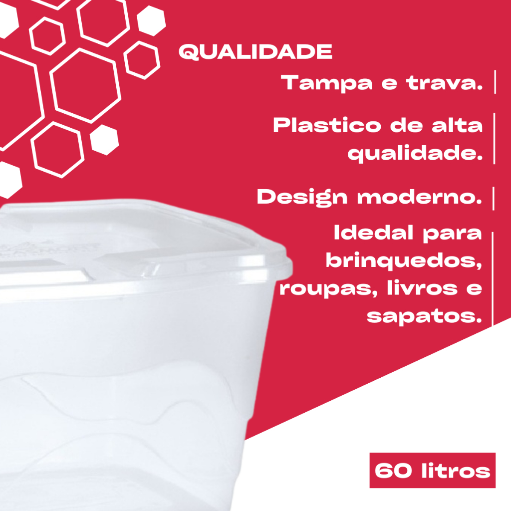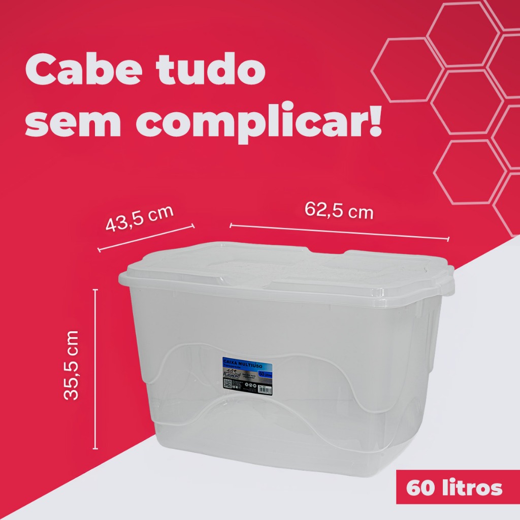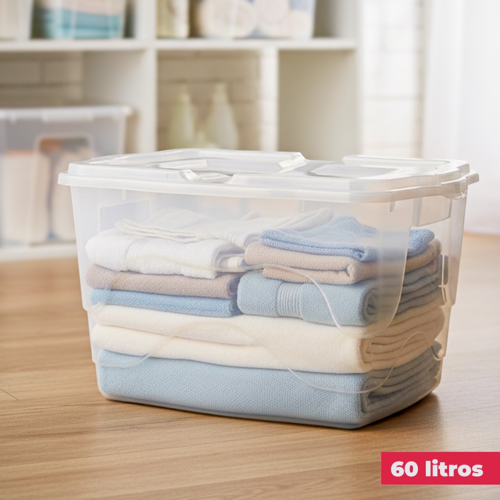 Caixa Organizadora 60 Litros G Transparente Com Tampa