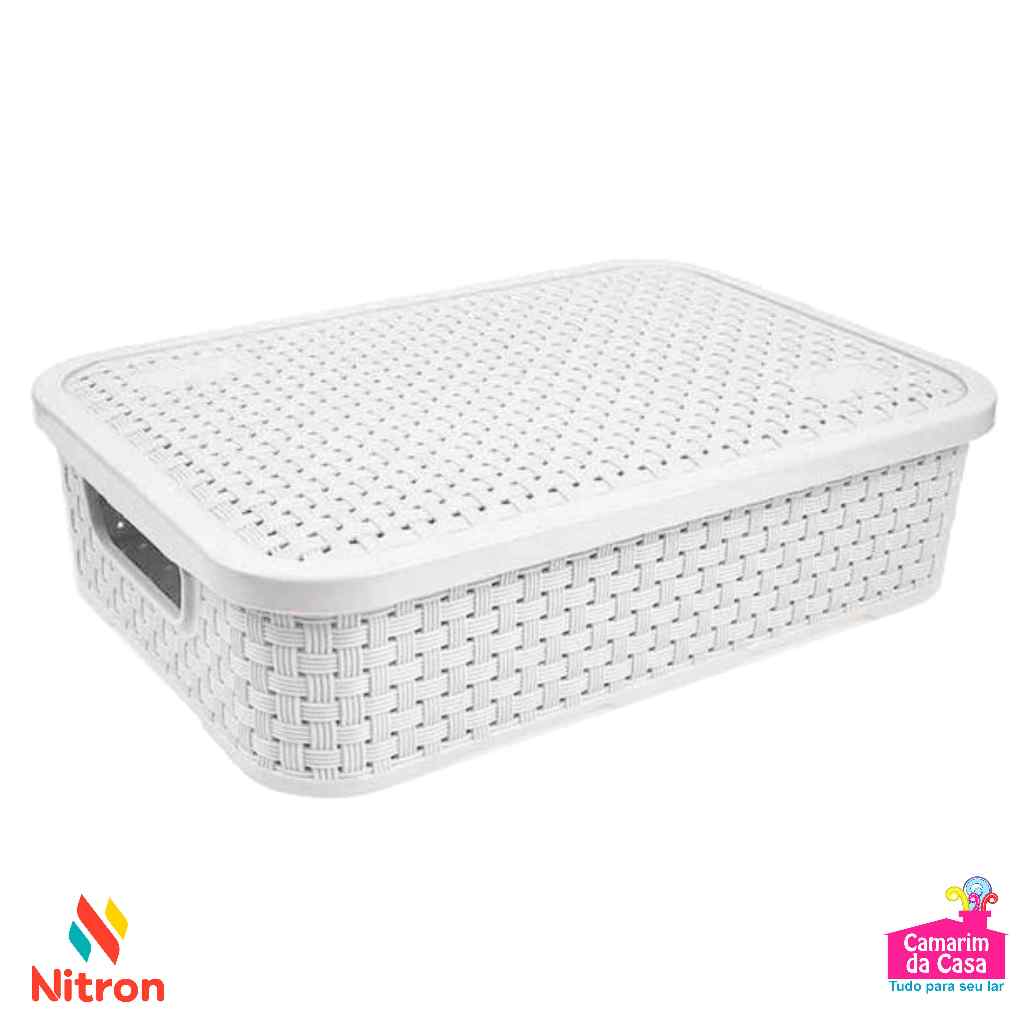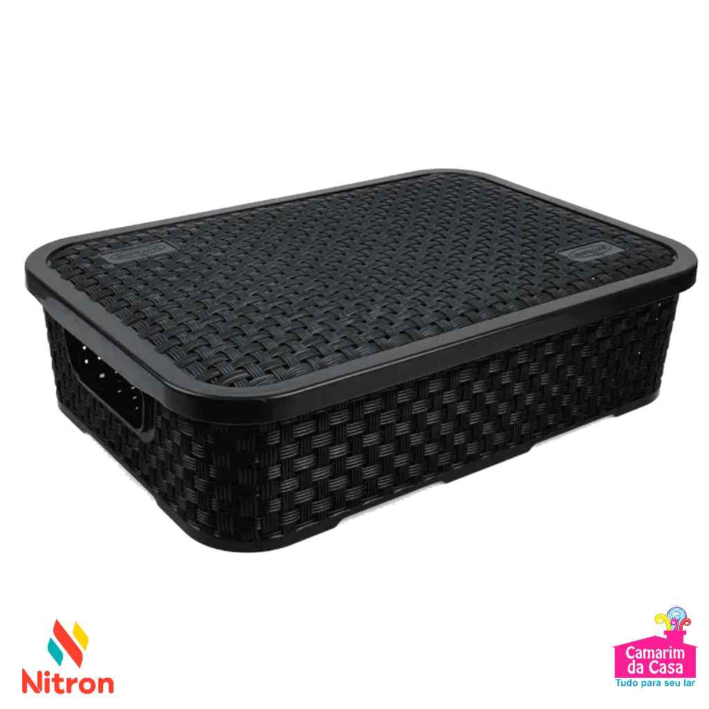 Caixa Organizadora Baixa Rattan Multiuso com Tampa 4,5 Litros em Plástico Resistente Ref. 260 Nitron