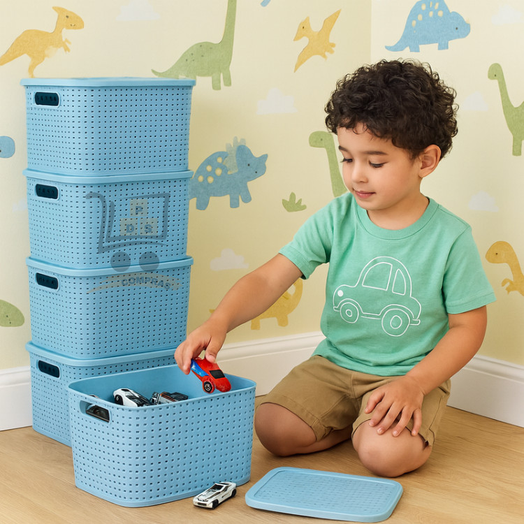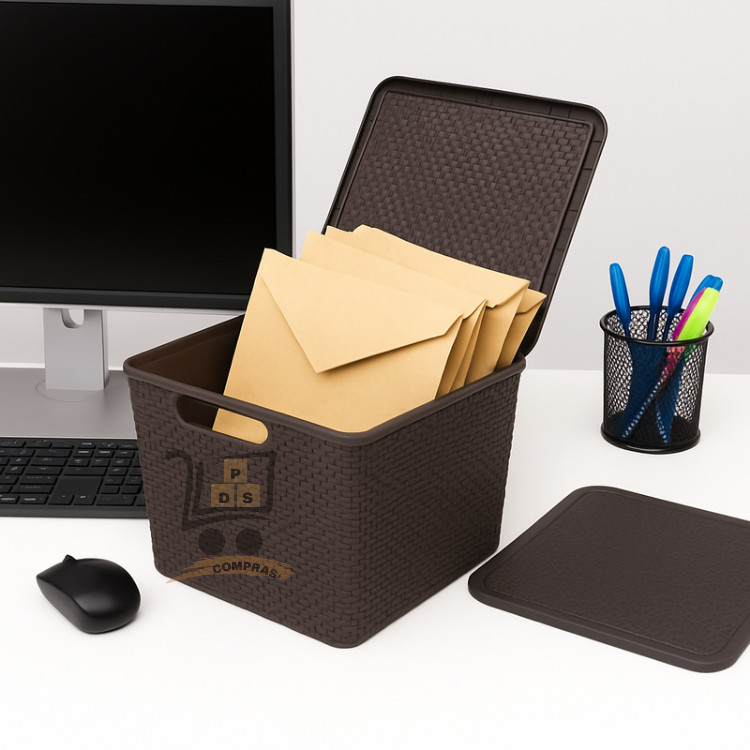 Caixa Organizadora Com Tampa 29x19x14cm Multiuso Rattan Brinquedos Livros Medicamentos Roupas Maquiagem