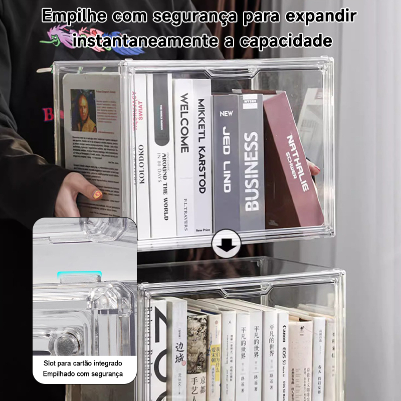 Caixa Organizadora De Livros Em Acrílico Transparente De Grande Capacidade Com Tampa E Proteção Contra Poeira