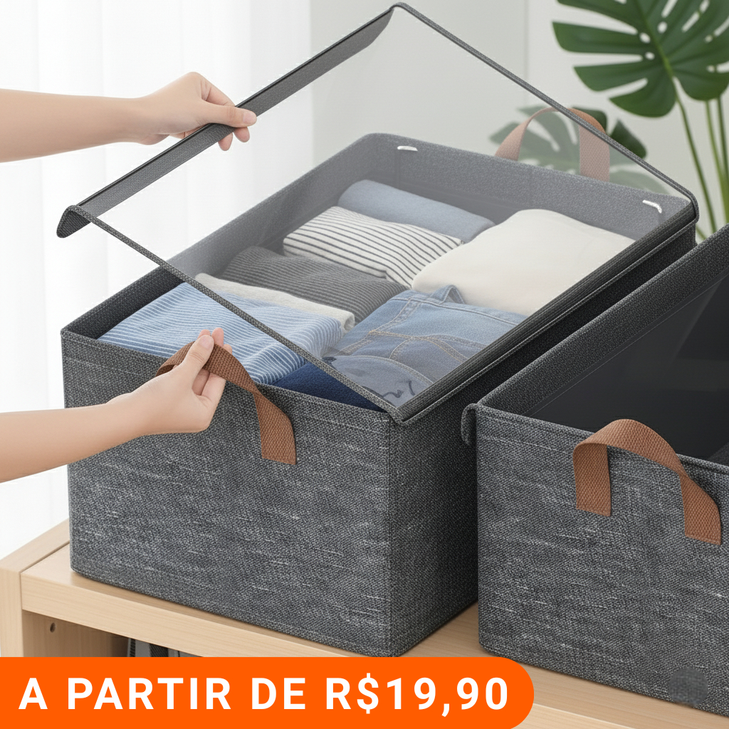 Caixa Organizadora Grande Com Tampa Transparente Dobrável Resistente Multiuso Para Roupas