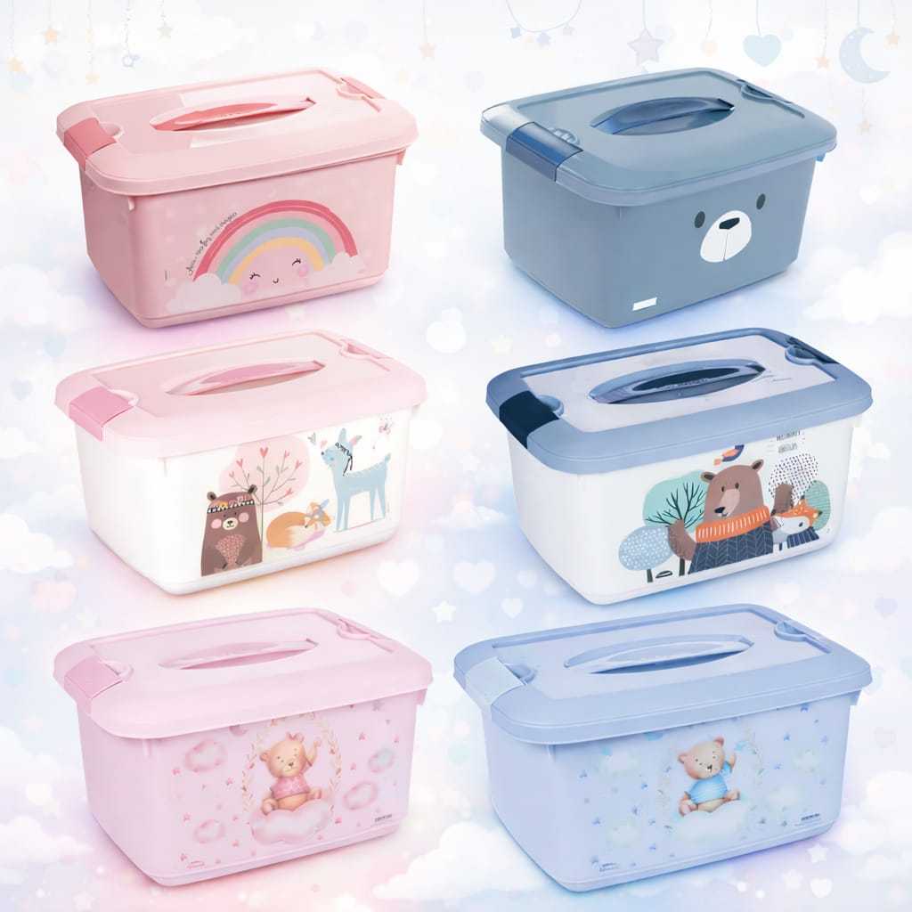 Caixa Organizadora Infantil com Travas Laterais e Alça Anatômica – Estampa Fofinha