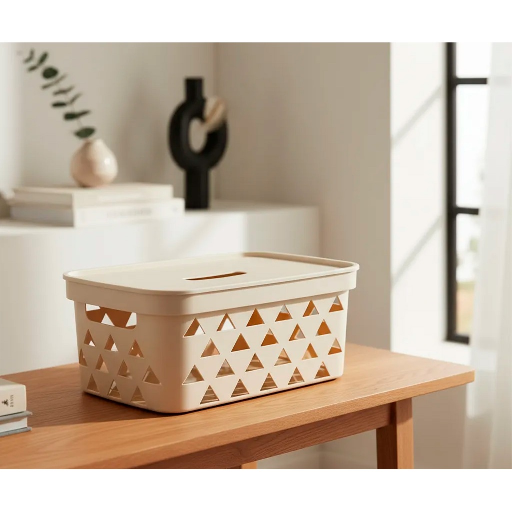 Caixa Organizadora Multiuso Triângulos Com Tampa e Alça 6,8L Empilhável Closet Quarto Casa