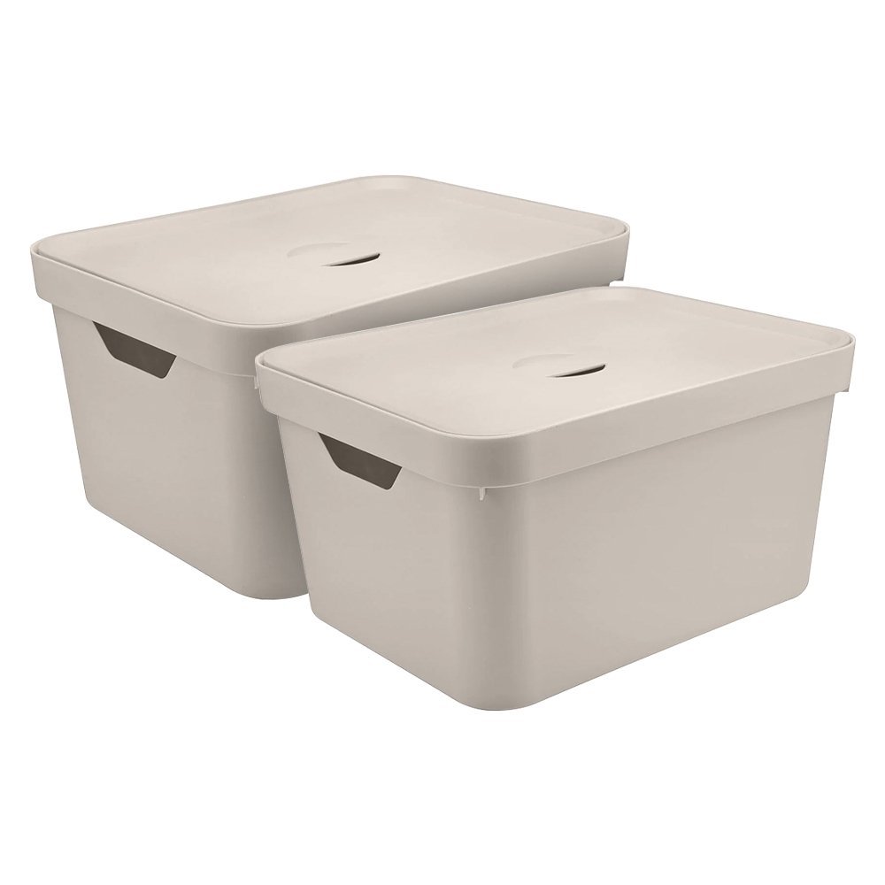 Caixa Organizadora Ou Cube G 32l Com Tampa Bege - Embalagem Com 2 Unidades
