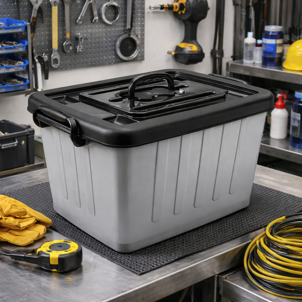 Caixa Organizadora Plástica 54,5L Com Tampa Trava e Rodinhas Resistente Container Plasnew