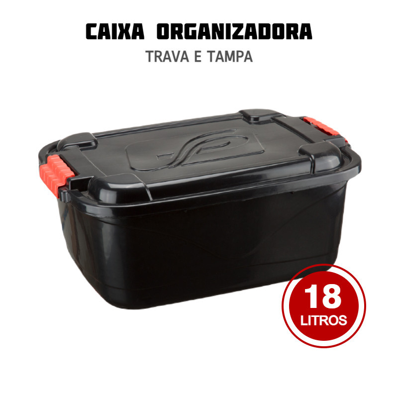 Caixa Organizadora Prática 18 Litros Preta Trava E Tampa