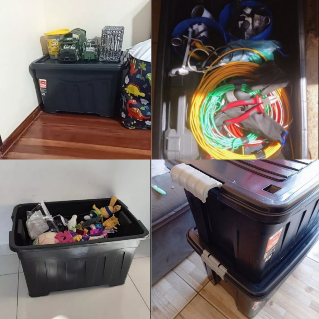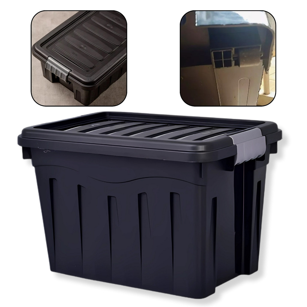 Caixa Organizadora Resistente Preta 53L Grande Multiuso Com Tampa Firme Travas e Rodinhas Reforçadas