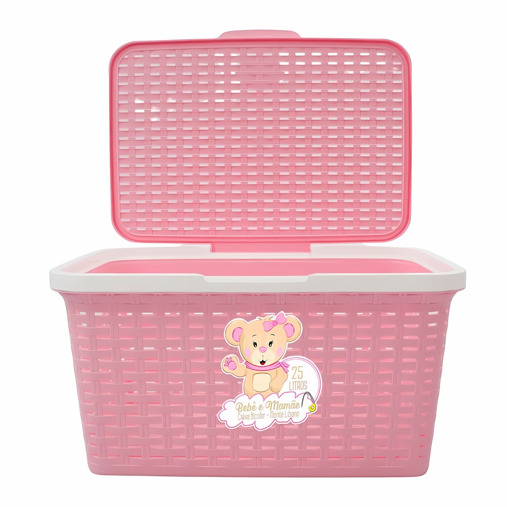 Caixa Organizadora Rosa 25L Com Tampa Para Fraldas Roupinhas E Brinquedos De Bebê Monte Líbano