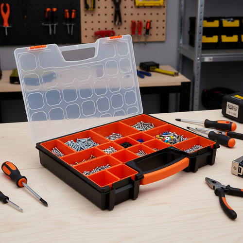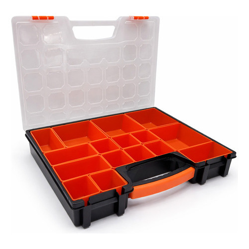 Caixa Organizadora Tipo Maleta 16 Divisórias com Tampa Transparente Porta Ferramentas