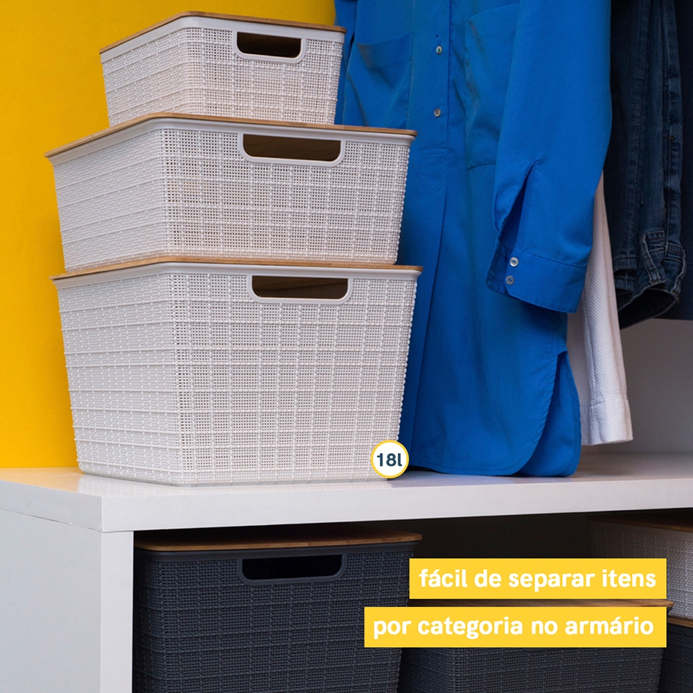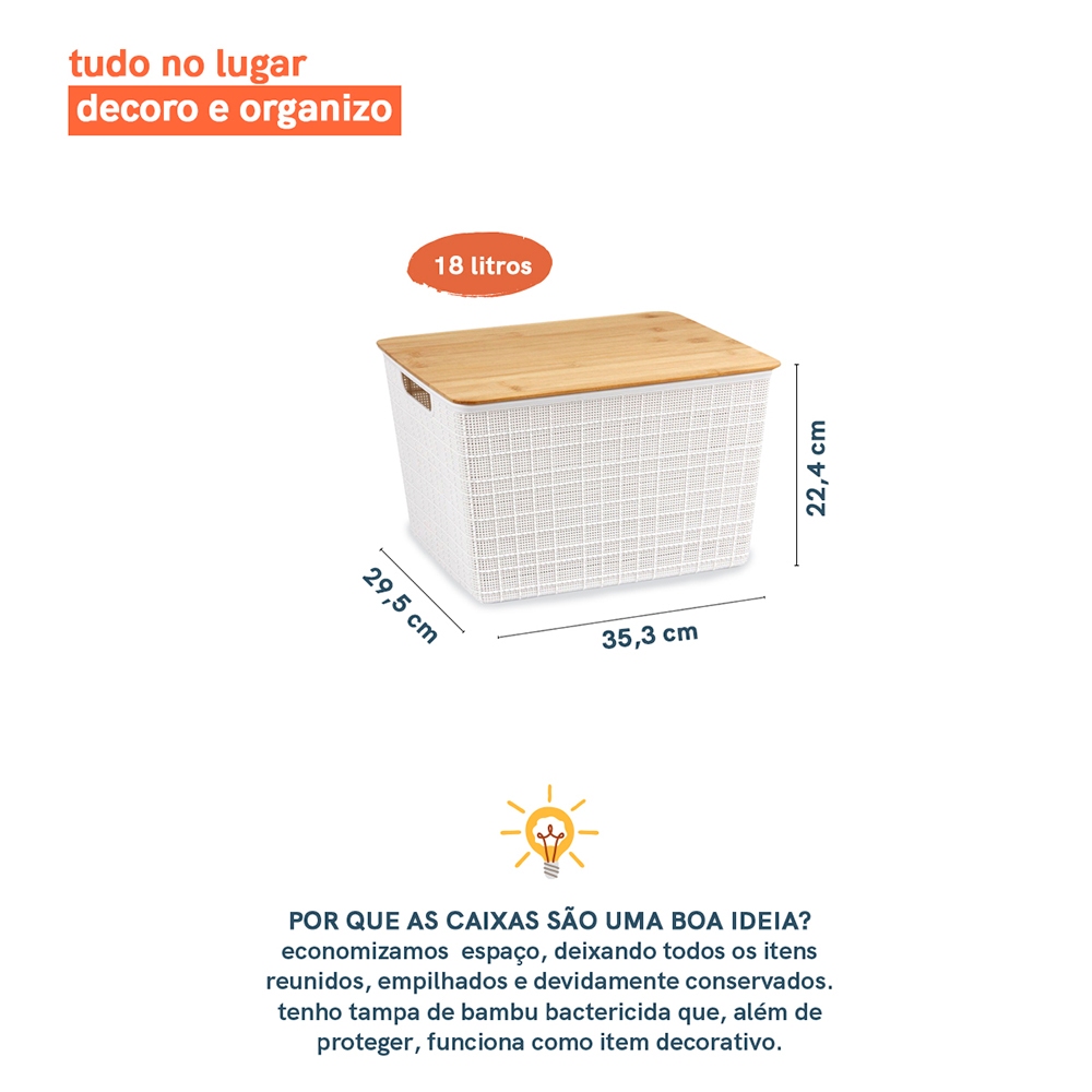 Caixa Organizadora com Tampa de Bambu 18l Oikos