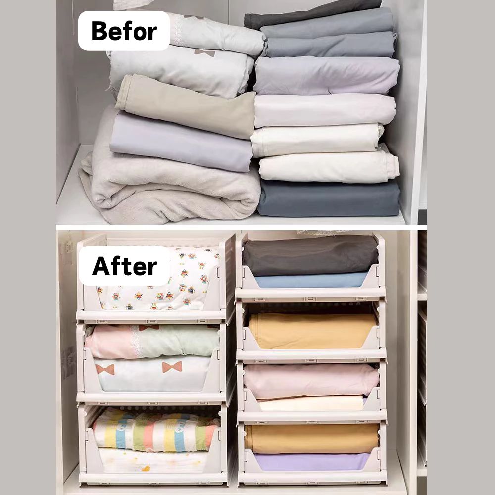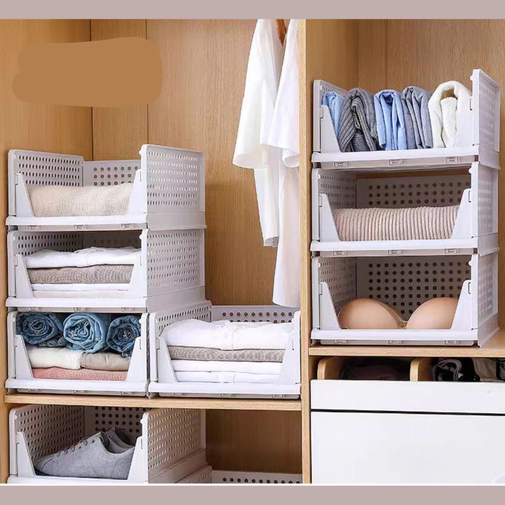Caixa Organizadora de Armário de Guarda-Roupa com Gavetas Plásticas, Divisória de Armário, Camadas.