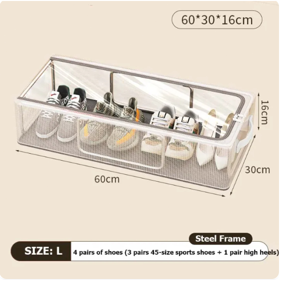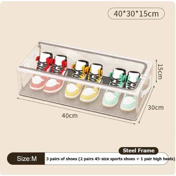 Caixa Organizadora de Sapatos com Zíper Transparente PVC -Caixa de Armazenamento Dobrável Antipoeira